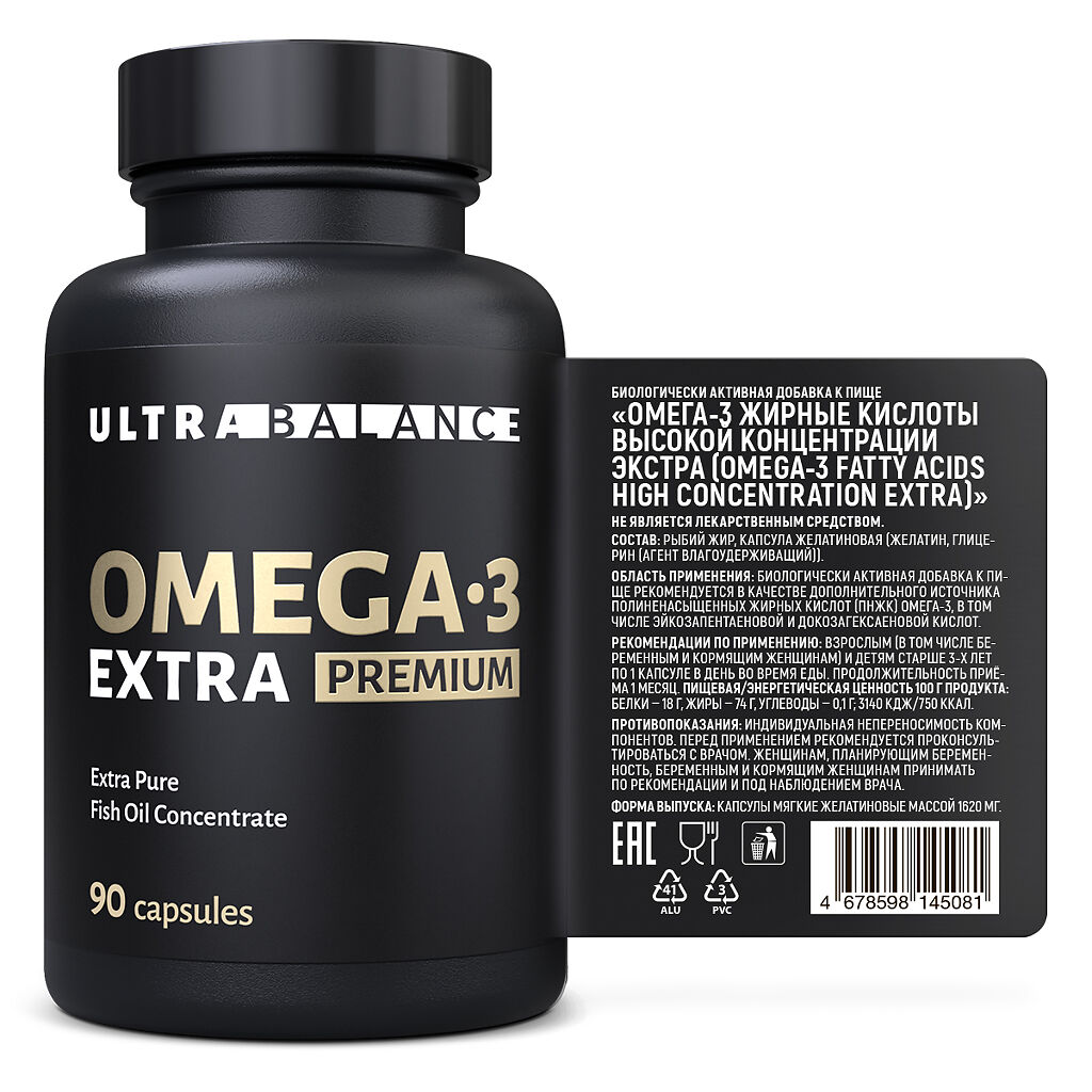 Омега-3/Omega-3 Extra Premium UltraBalance жирные кислоты высокой концентрации капсулы массой 1620 мг 90 шт: 137 отзывов покупателей и фармацевтов