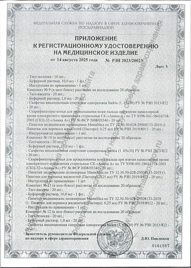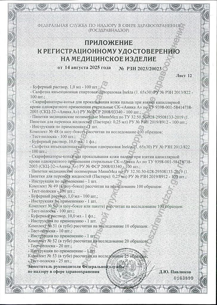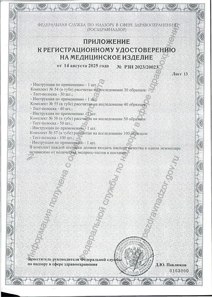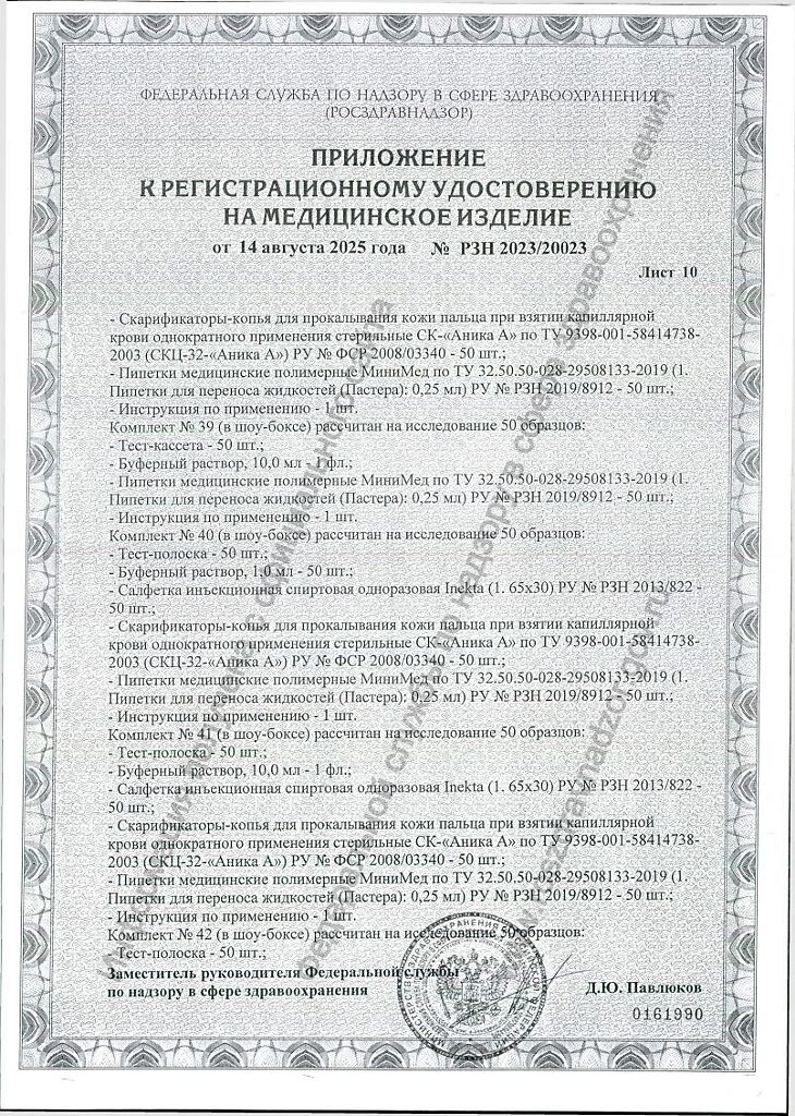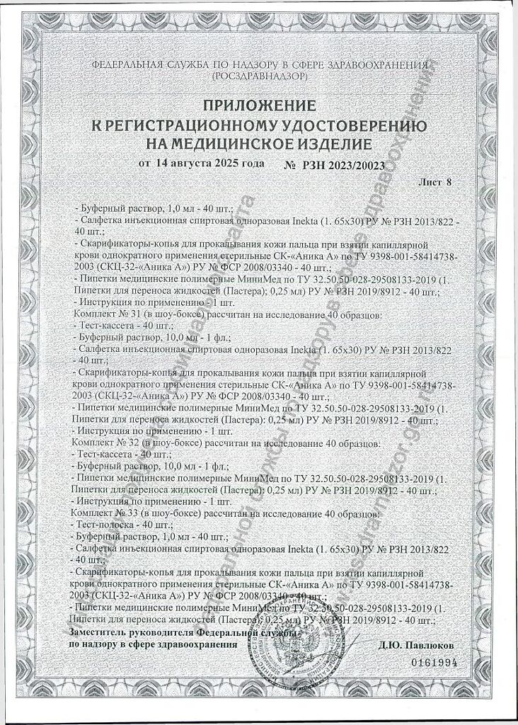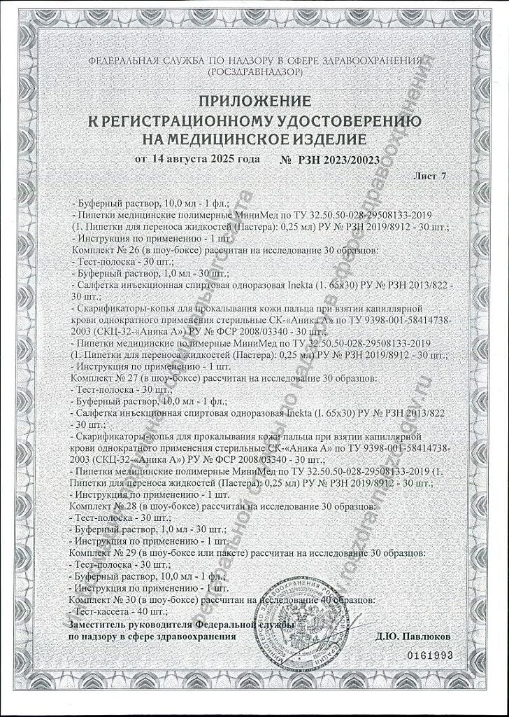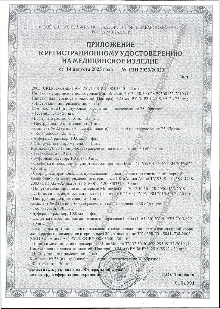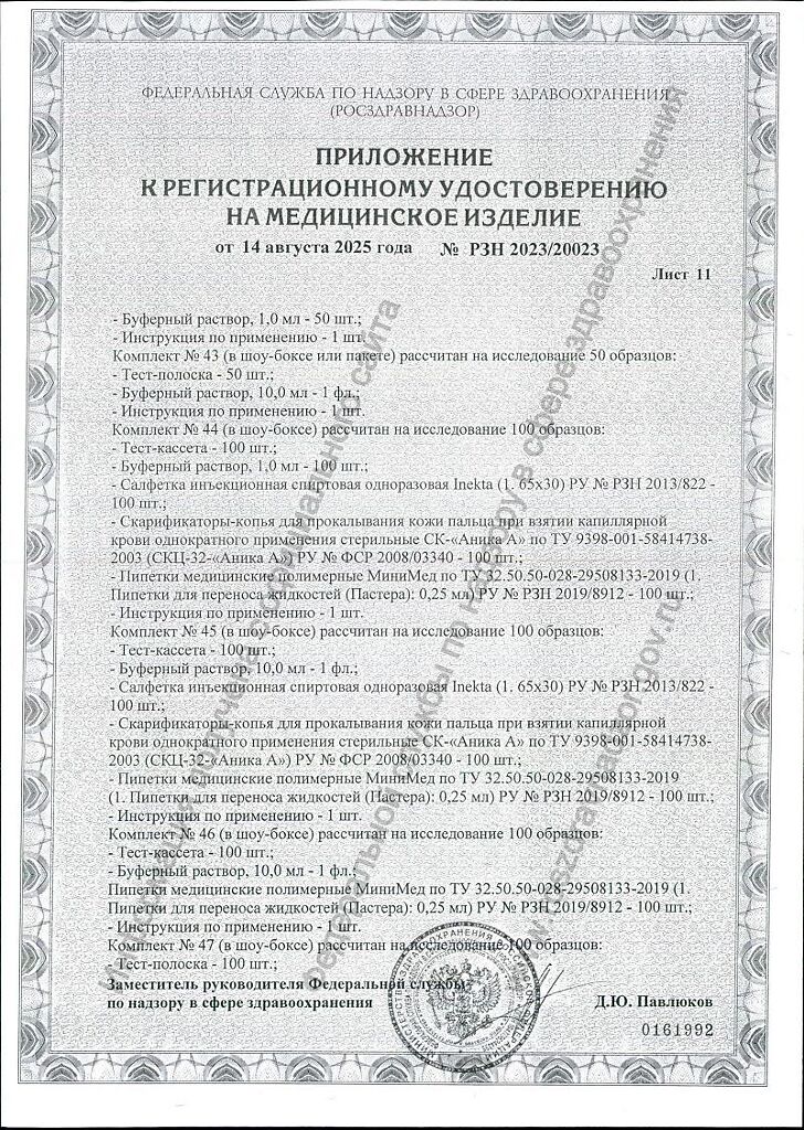 В случае получения недействительного результата анализ следует повторить с использованием другой тест-кассеты набора.