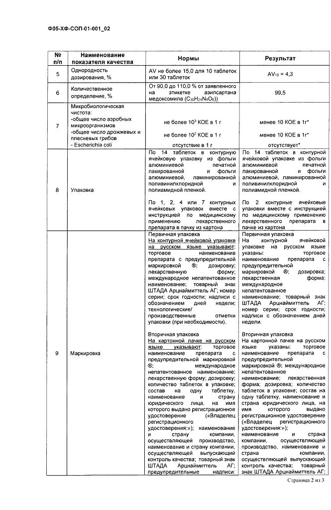 Активное вещество: азилсартана медоксомил калия 42,68 мг соответствует азилсартана медоксомилу 40 мг
