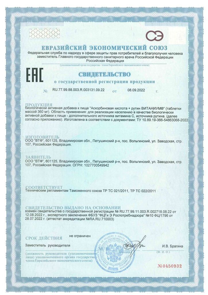 Документы Витаниум Аскорбиновая кислота + рутин таблетки массой 360 мг 50 шт