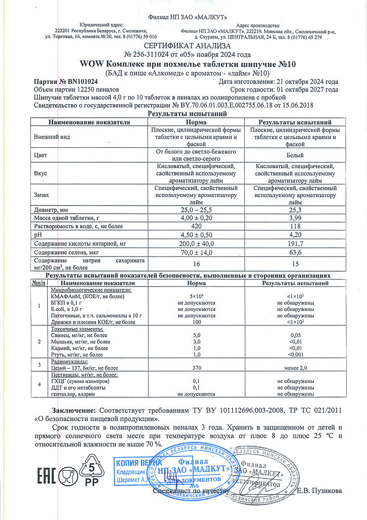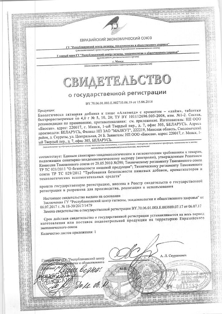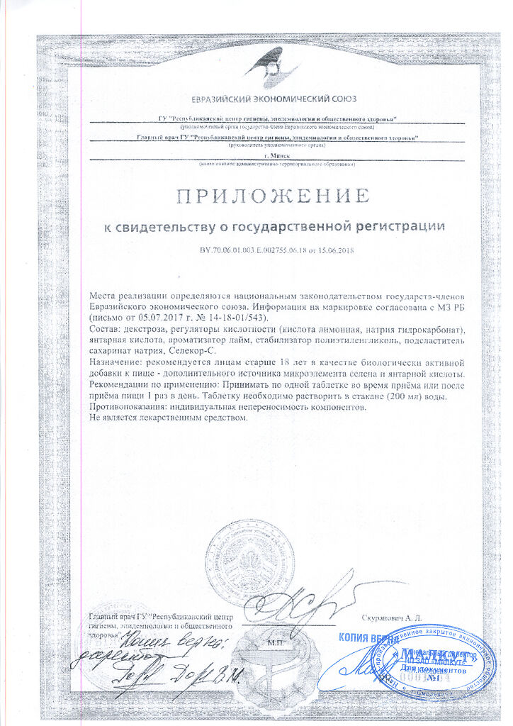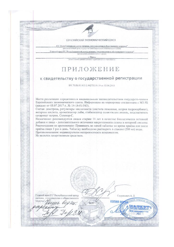 Принимать по одной таблетке во время приема или после приема пищи 1 раз в день. Таблетку необходимо растворить в стакане (200 мл) питьевой воды.