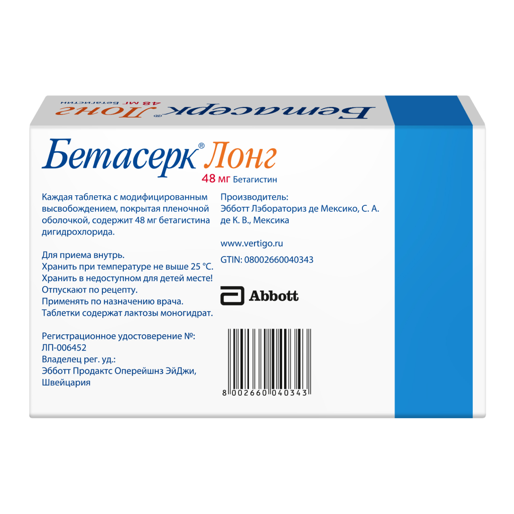 Цены на Бетасерк Лонг в других городах