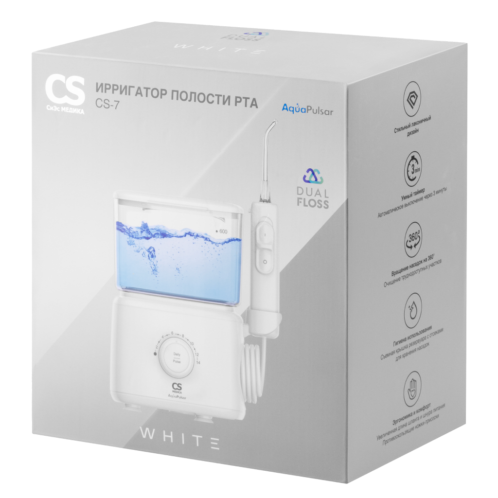 Ирригатор полости рта портативный CS Medica AquaPulsar CS-7 Dual Floss White белый 1 шт: отзывы покупателей и фармацевтов