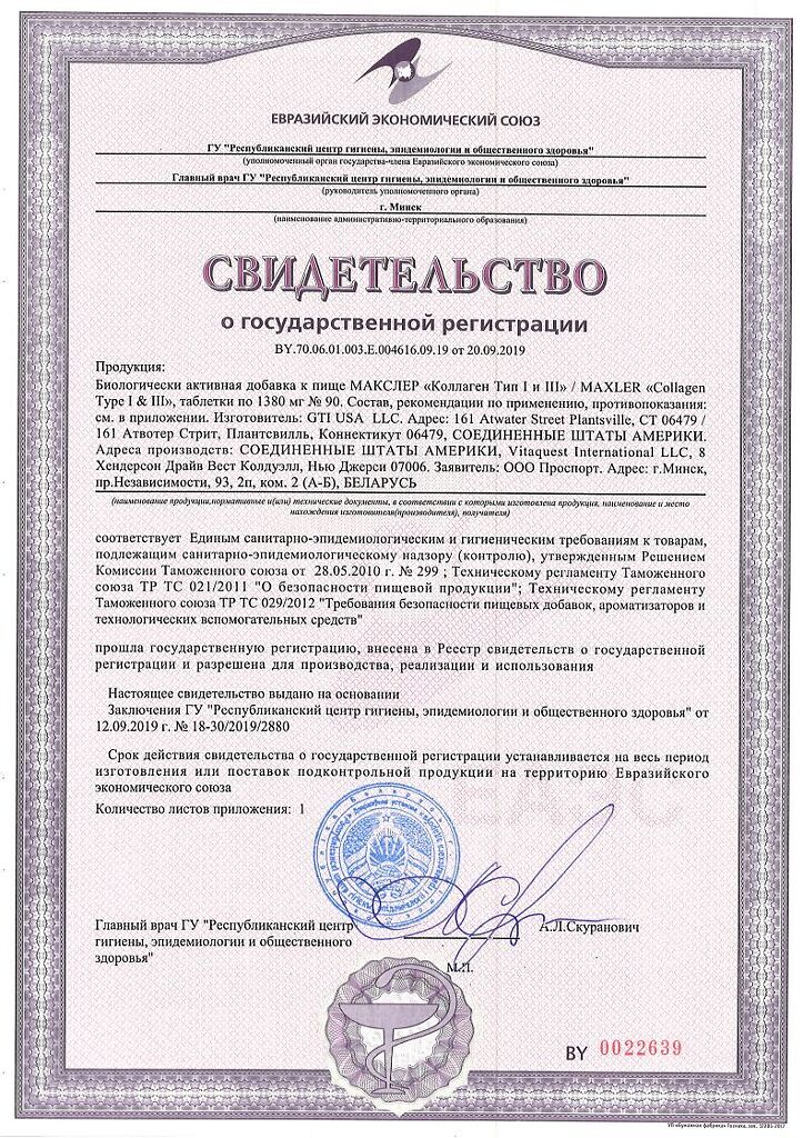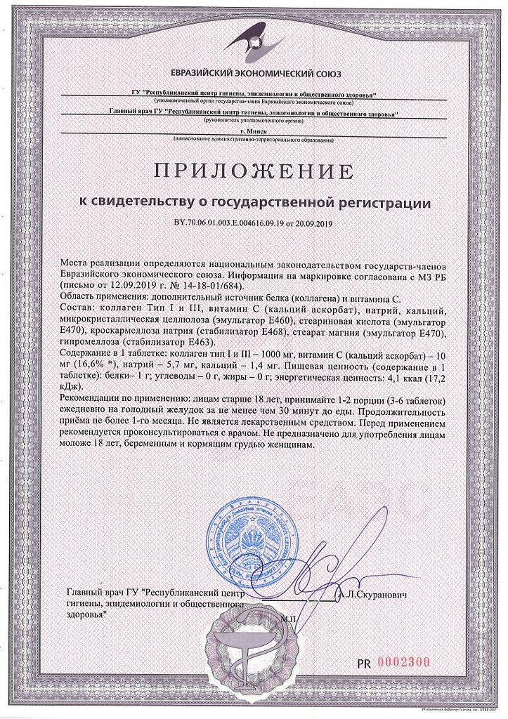 | Гидролизованный коллаген тип 1 и 3 (Peptan®) | 3 г | * |
