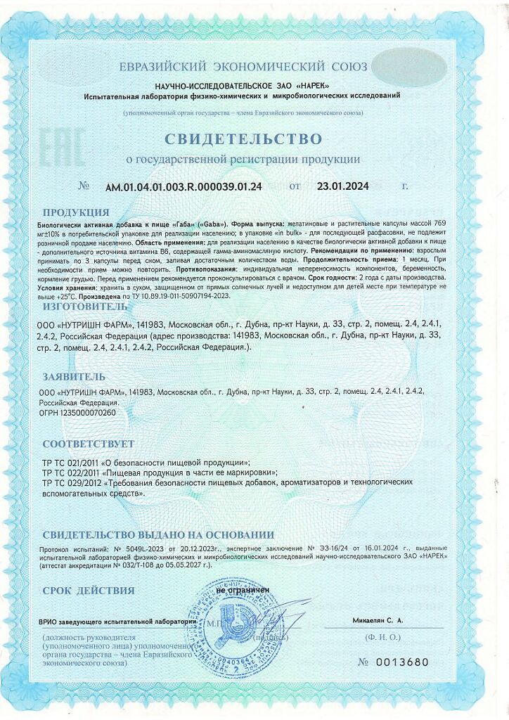 Документы IPSUM Габа / Gaba желатиновые и растительные капсулы массой 769 мг 60 шт