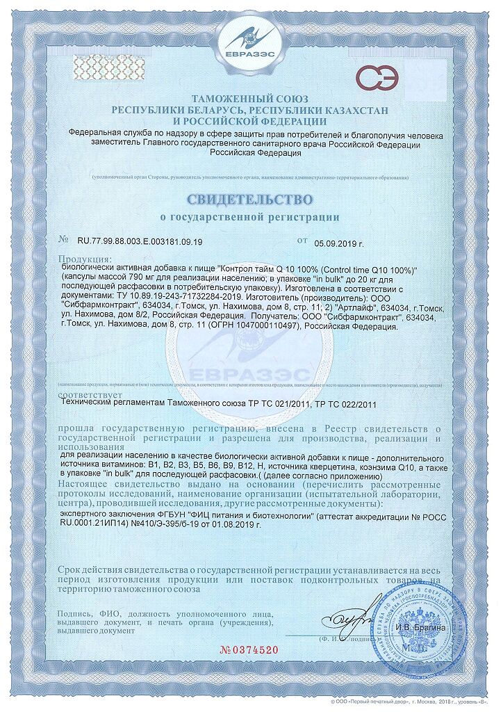 Документы 1WIN Контрол тайм Q 10 100%/Control time Q10 100% капсулы массой 790 мг 60 шт