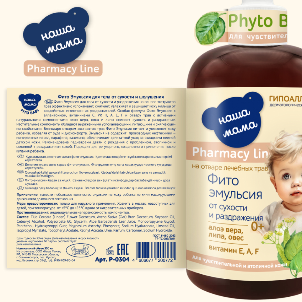 • 🏪 Купить Наша Мама Pharmacy Line Детская фито эмульсия от сухости и раздражения для чувствительной и атопичной кожи 0+ 300 мл 1 шт можно на сайте и в наших аптеках