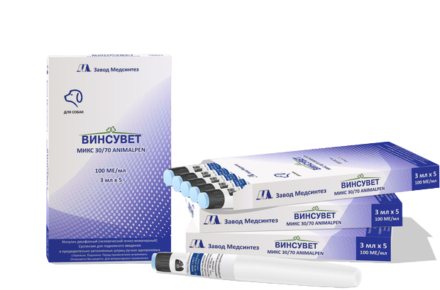 ВИНСУВЕТ микс 30/70 ANIMALPEN применяют собакам для лечения сахарного диабета, требующего инсулинотерапии.