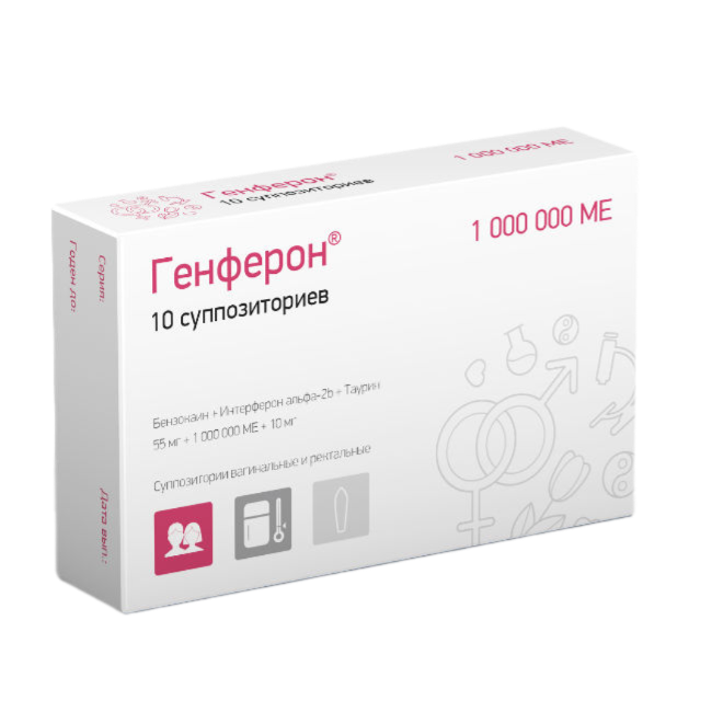 ГЕНФЕРОН® наиболее эффективен в сочетании с лекарственными средствами, (включая антибиотики и другие противомикробные препараты), применяемыми для лечения урогенитальных заболеваний. Ненаркотические анальгетики и антихолинэстеразные лекарственные средства усиливают действие бензокаина. Бензокаин снижает антибактериальную активность сульфаниламидов.
