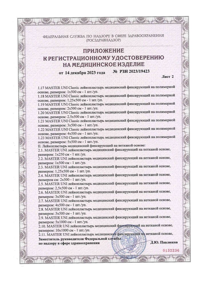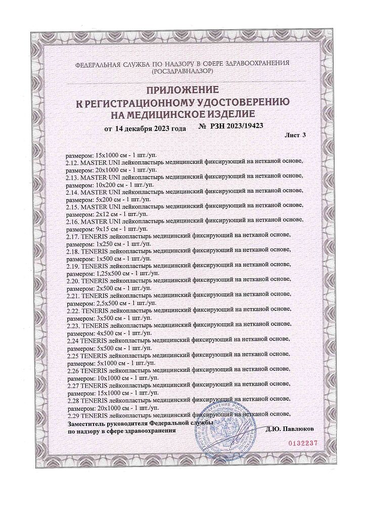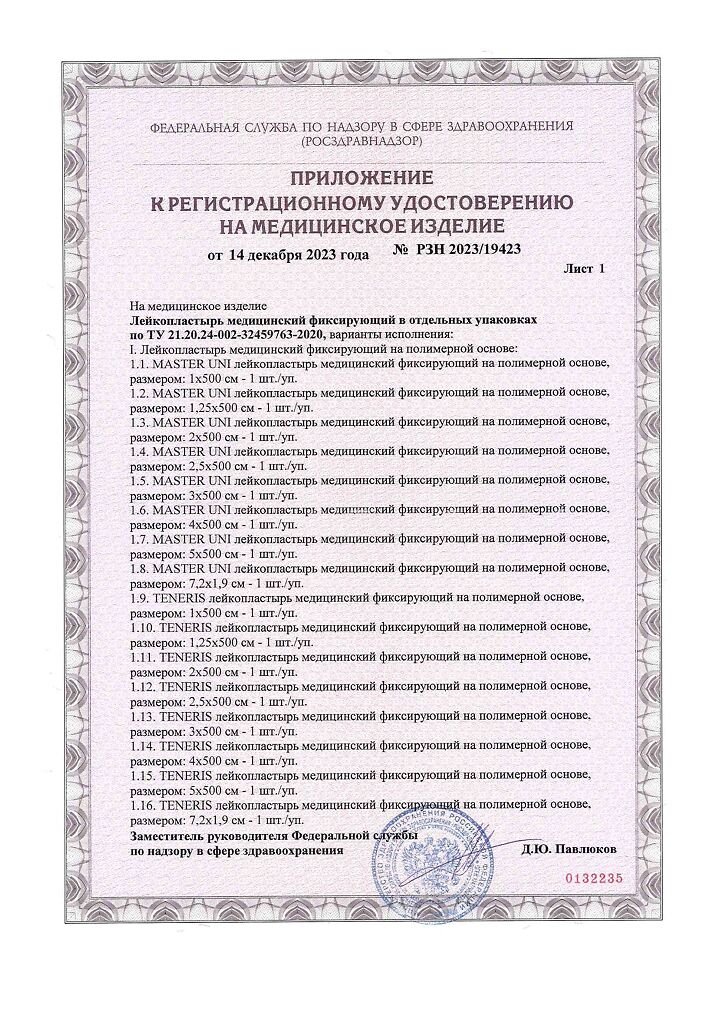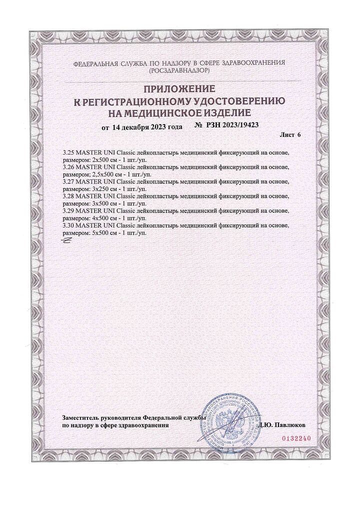 Документы Master Uni Лейкопластырь на полимерной основе 3 х 500 см 1 шт