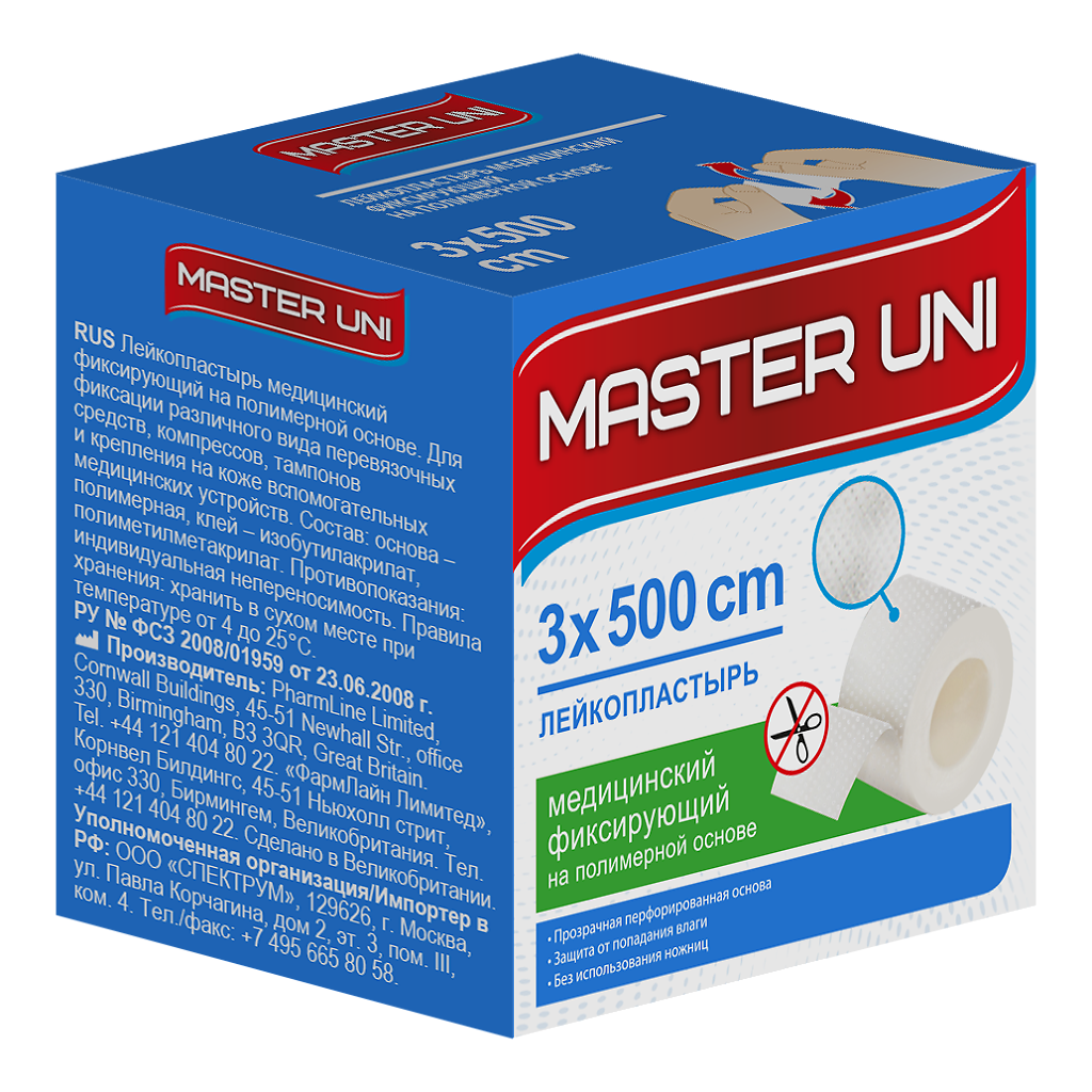 • 📒 Подробная инструкция по применению Master Uni Лейкопластырь на полимерной основе 3 х 500 см 1 шт