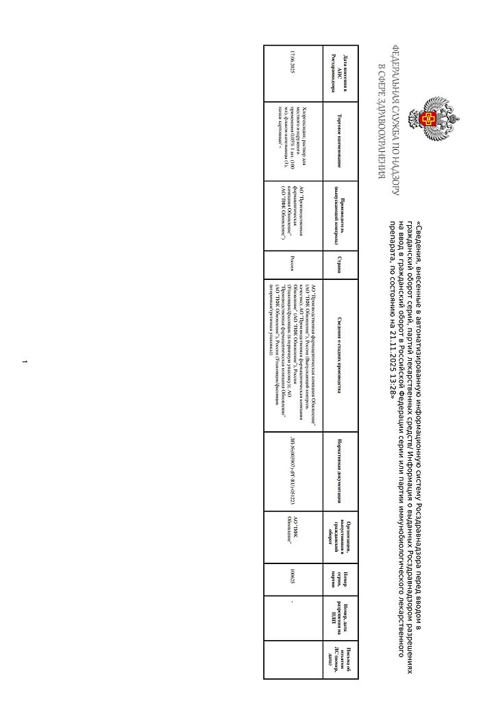 В случае попадания на слизистую оболочку глаза, следует быстро и тщательно промыть водой. Попадание гипохлористых отбеливающих веществ на ткани, которые ранее находились в контакте с содержащими хлоргексидин препаратами, может способствовать появлению на них коричневых пятен. При температуре выше 100 ºС препарат частично разлагается. Не рекомендуется одновременное применение с йодом.