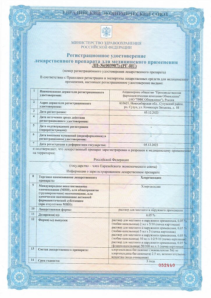 - Хлоргексидина биглюконат, субстанция- раствор – 2,5 мл (эквивалентно 500 мг хлоргексидина биглюконата)