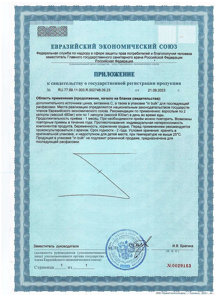 Документы 2SN Цинка цитрат+Vitamin С/Zinc citrate+Витамин С капсулы массой 830 мг 120 шт