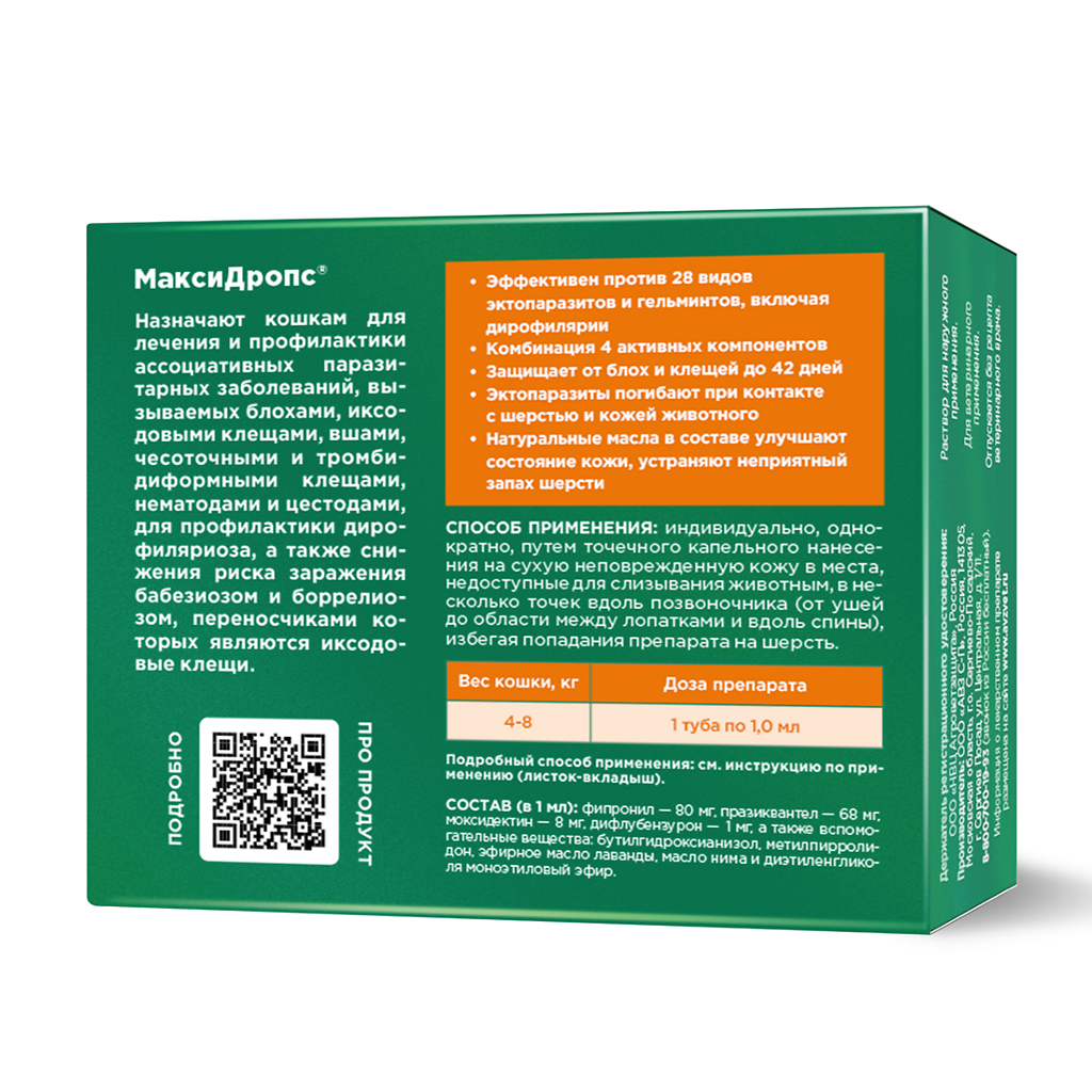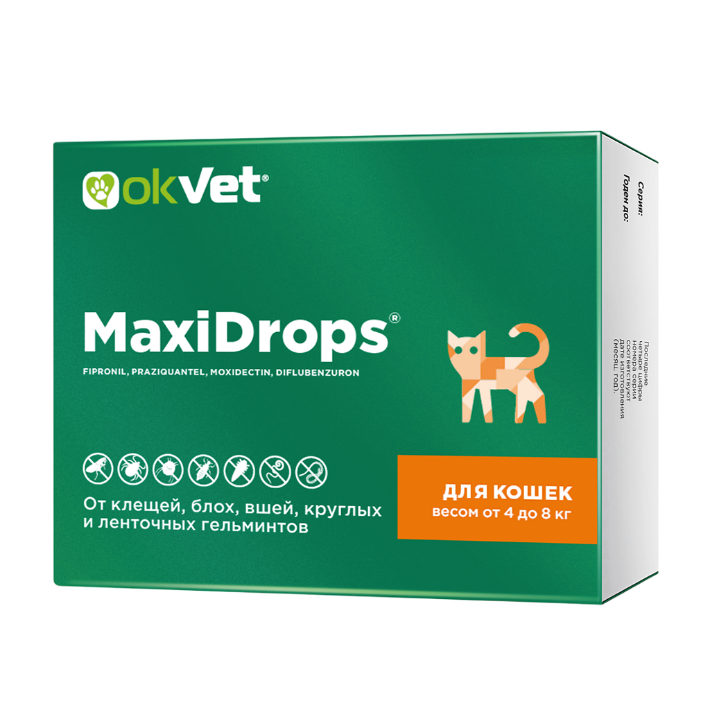 Действующее вещество: фипронил, празиквантел, моксидектин, дифлубензурон