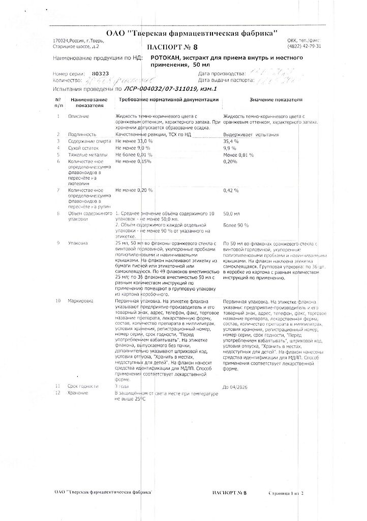 жидкий экстракт (соотношение сырья к эстрагенту 1:1):