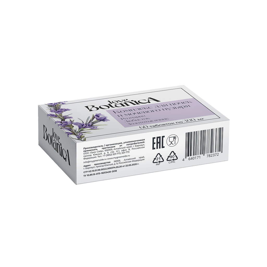 микрокристаллическая целлюлоза и крахмал картофельный (носители), экстракт корня любистока лекарственного, экстракт травы золототысячника, экстракт травы розмарина обыкновенного, экстракт листьев брусники обыкновенной, диоксид кремния аморфный и стеарат кальция (агенты антислёживающие).