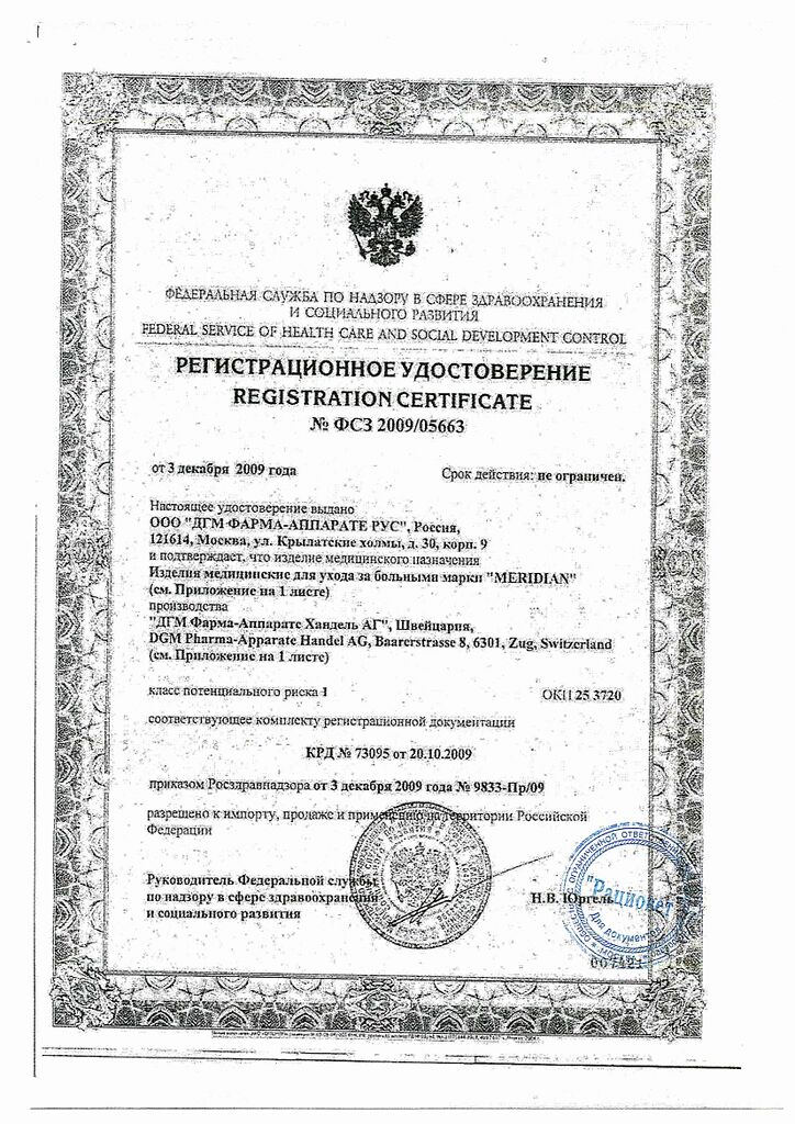 При индивидуальном пользовании возможна дезинфекция грелки с системой вышеуказанными растворами не перед каждым применением. При этом грелку с системой промыть горячей водой температурой не выше 90°C, присоединить наконечник, обработанный 1% раствором хлорамина в течении 30 минут или 3% по массе раствором перекиси водорода в течении 80 минут и промыть горячей проточной водой.