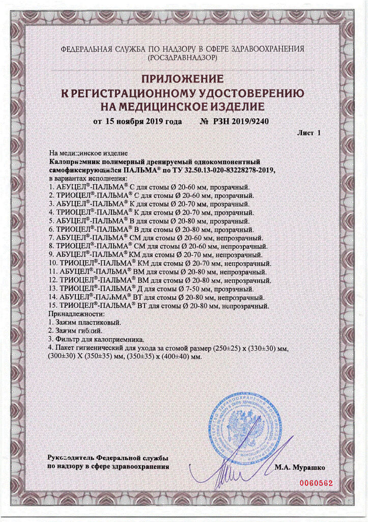 Предназначен для сбора испражнений у пациентов с коло - и илеостомами диаметром 20-80 мм.