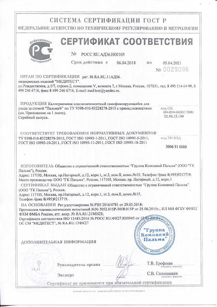Калоприемник может оставаться на коже в течение нескольких дней, не вызывая раздражения в месте крепления и обеспечивая комфортные условия для кожи вокруг стомы.