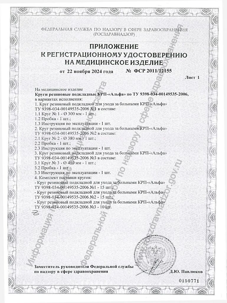 Круг диаметром: №1 300х95 мм, №2 - 380х130 м, №3 - 450х140 мм