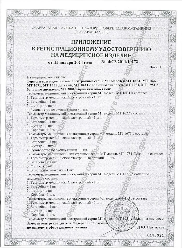 Термометр с элементом питания, инструкция, гарантийный талон, упаковка
