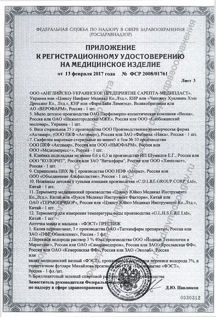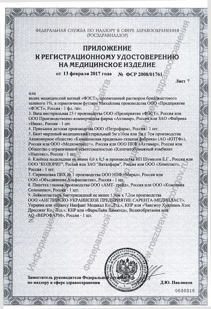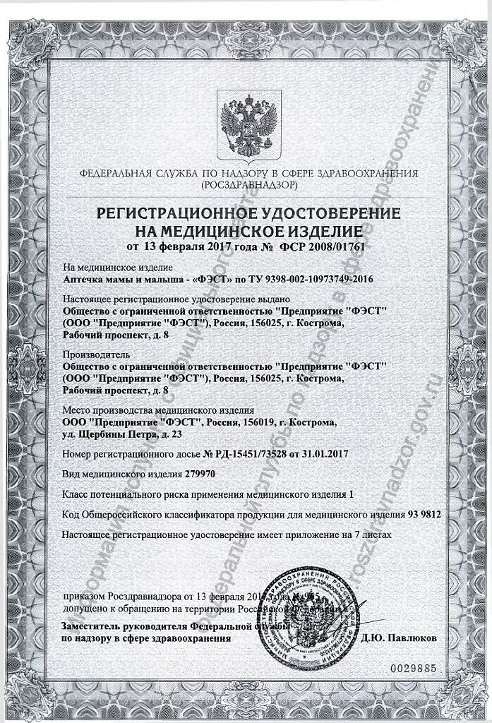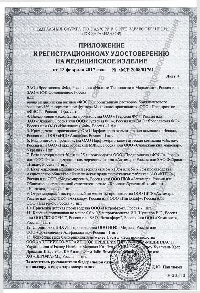 Эта аптечка по составу является оптимальной по требованиям МЗ РФ.