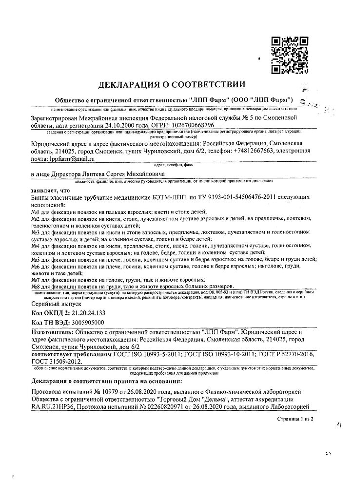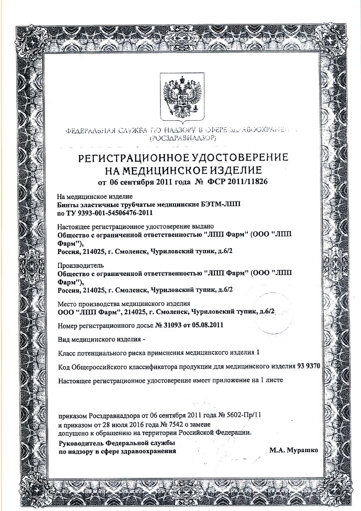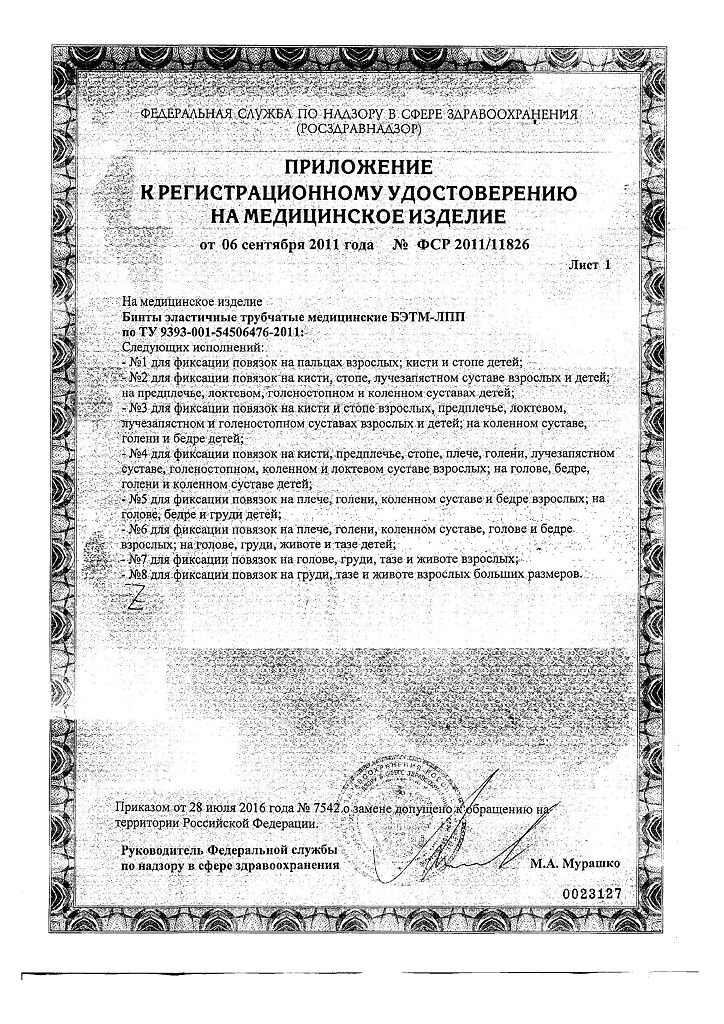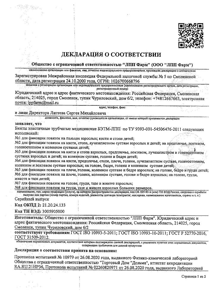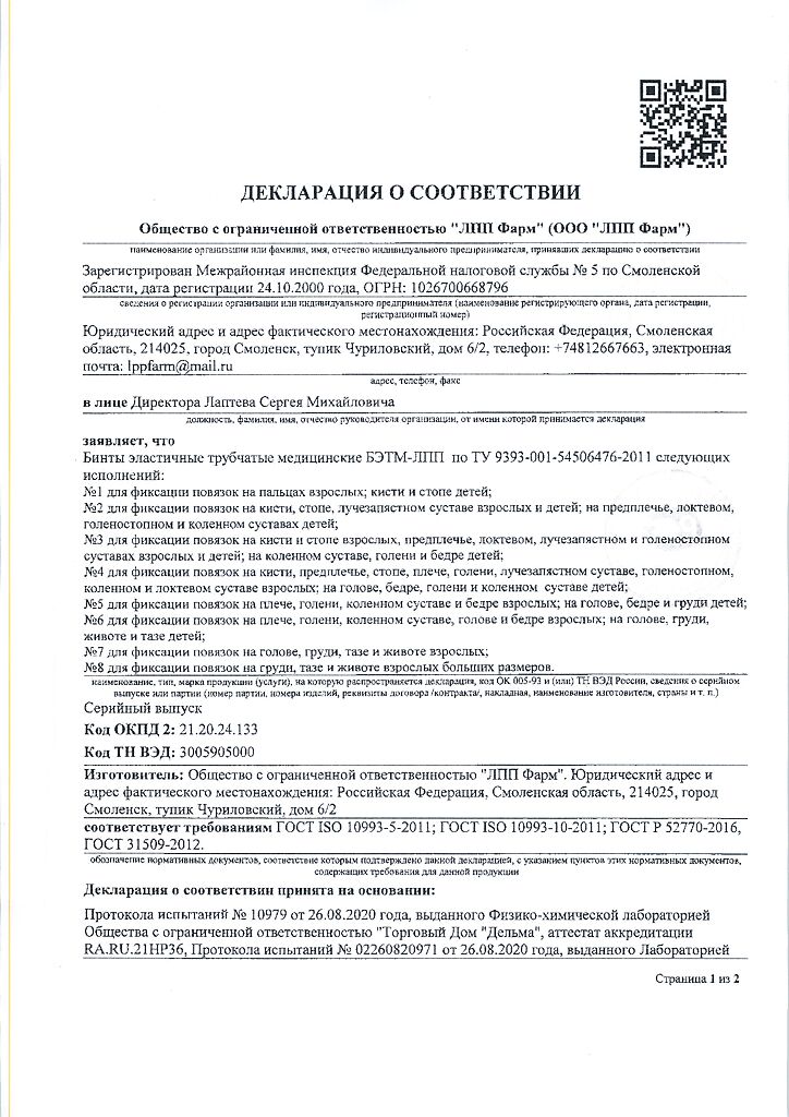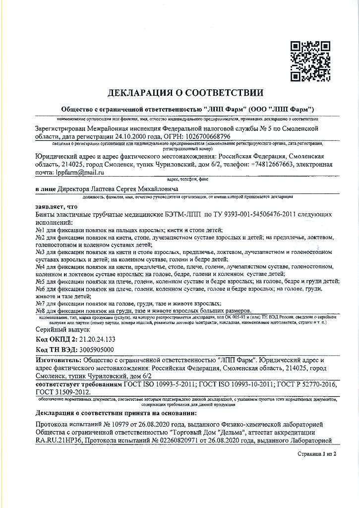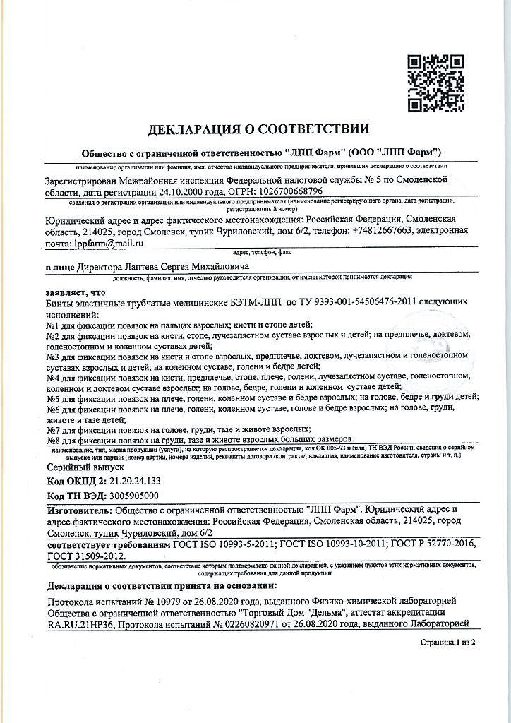 Бинт медицинский эластичный сетчатый, трубчатый, фиксирующий, нестерильный