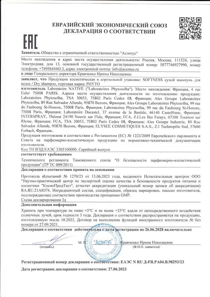 • 📒 Подробная инструкция по применению Phyto Softness Сухой шампунь для волос