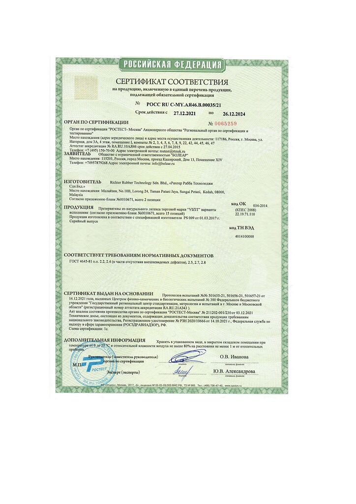 Производитель: Richter Rubber Technology Sdn. Bhd., Малайзия