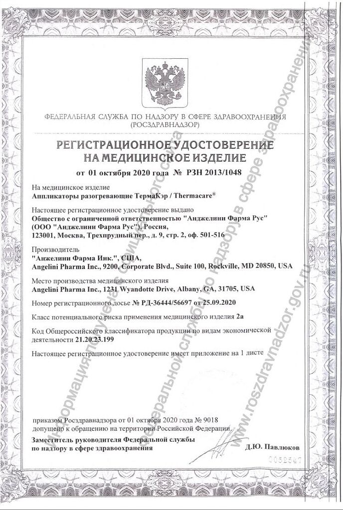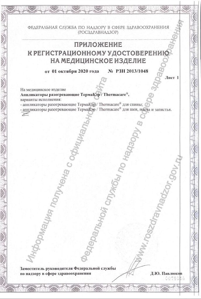 Лицам 55 лет и старше рекомендуется носить аппликатор поверх нательногобелья или ткани и не использовать аппликатор во время сна.
