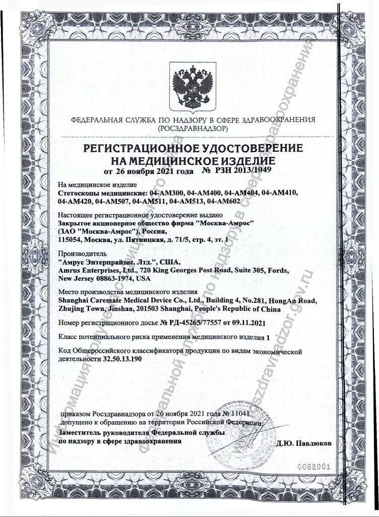 Документы Стетоскоп Amrus