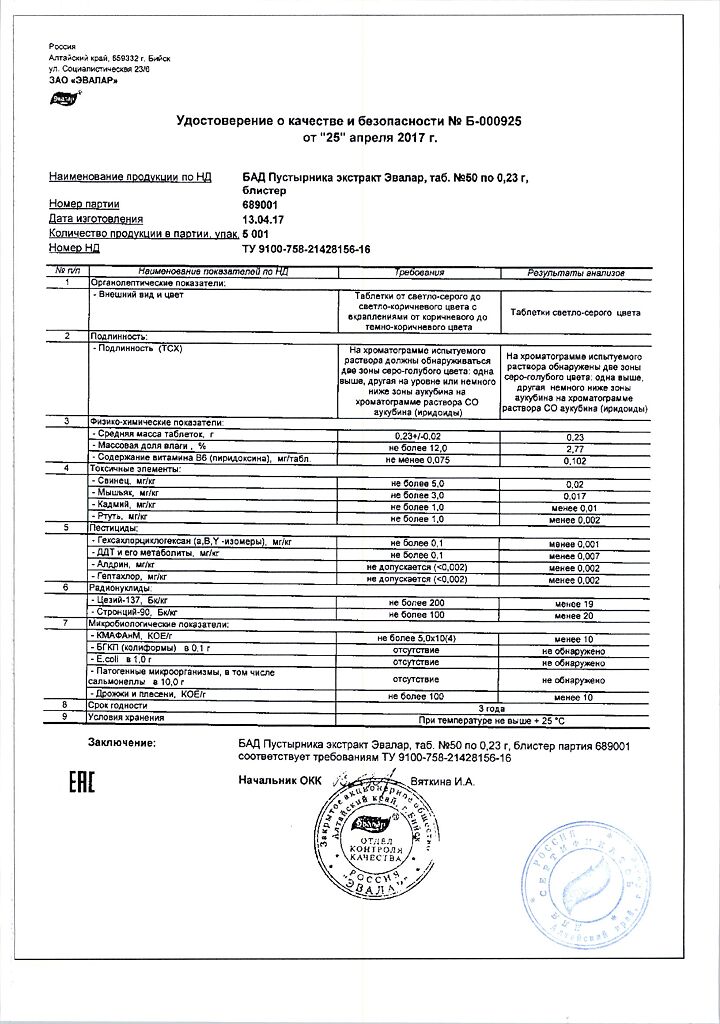 Производитель: Эвалар ЗАО, Россия