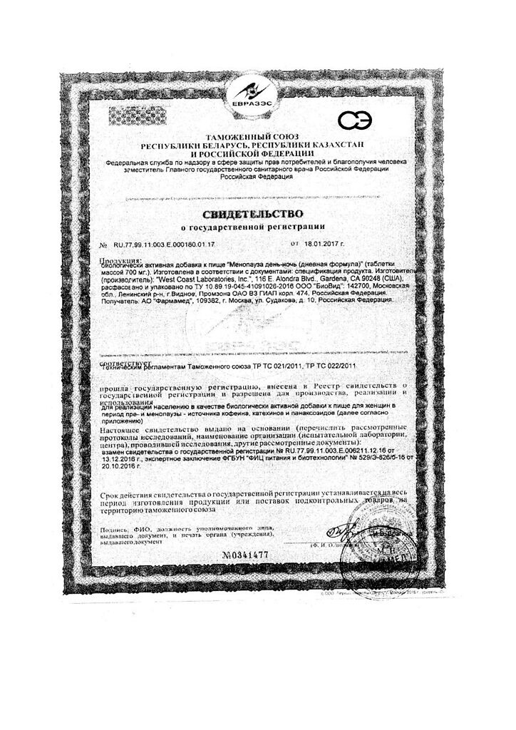 Lady's formula Менопауза День-Ночь состав дневной и ночной формул: