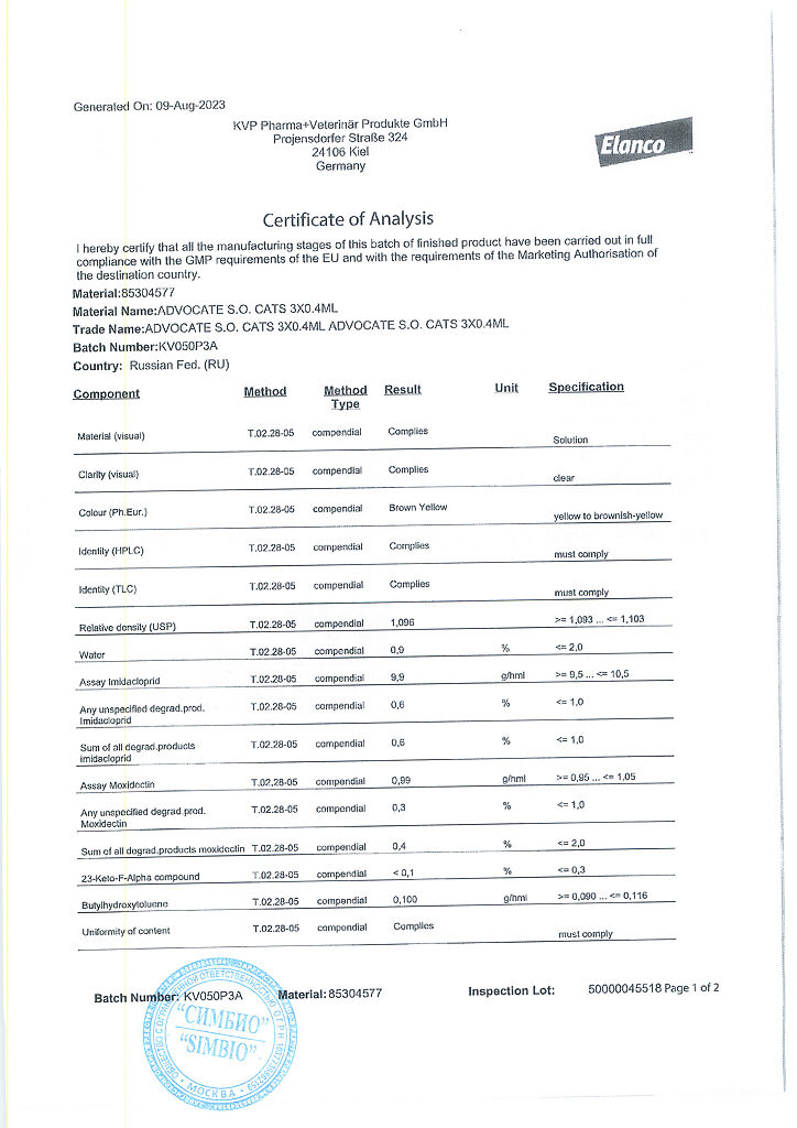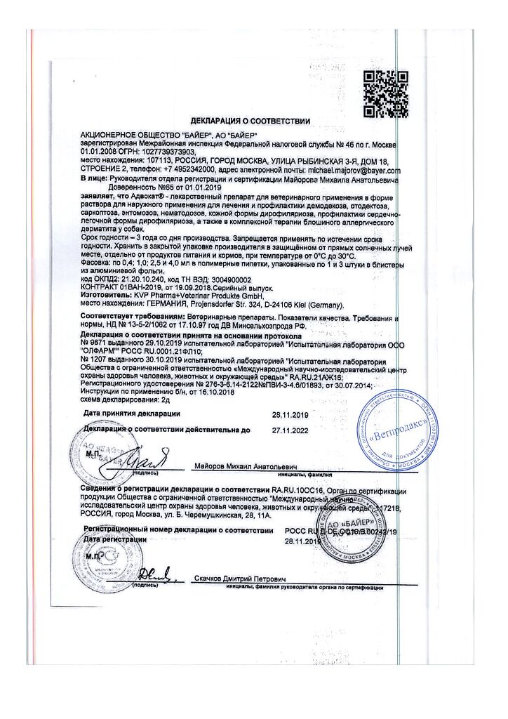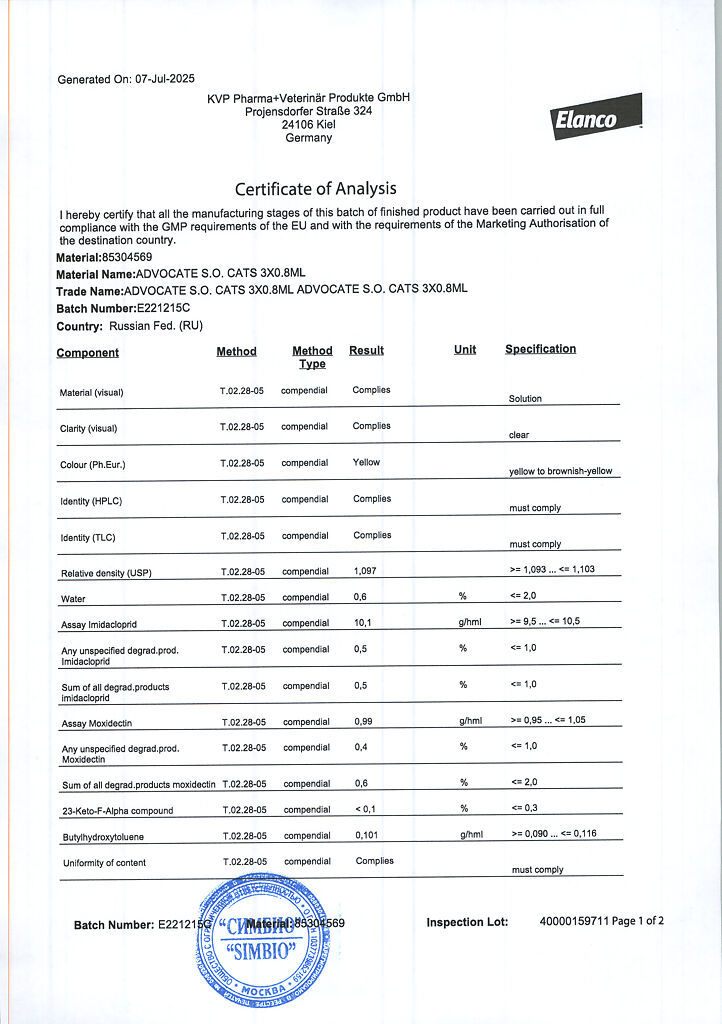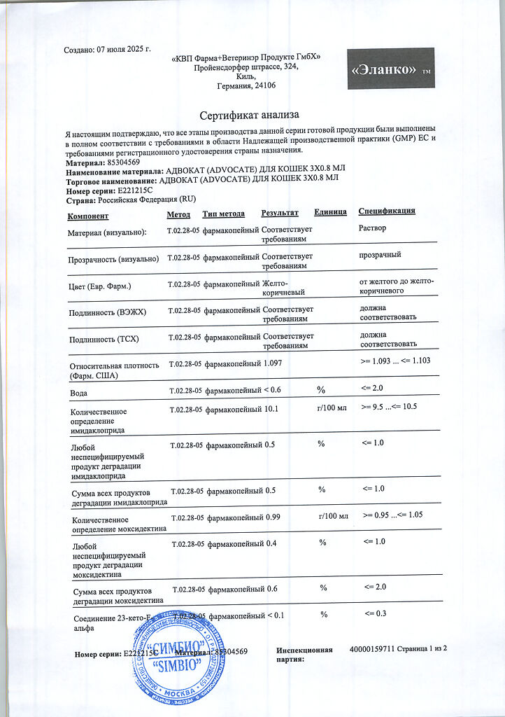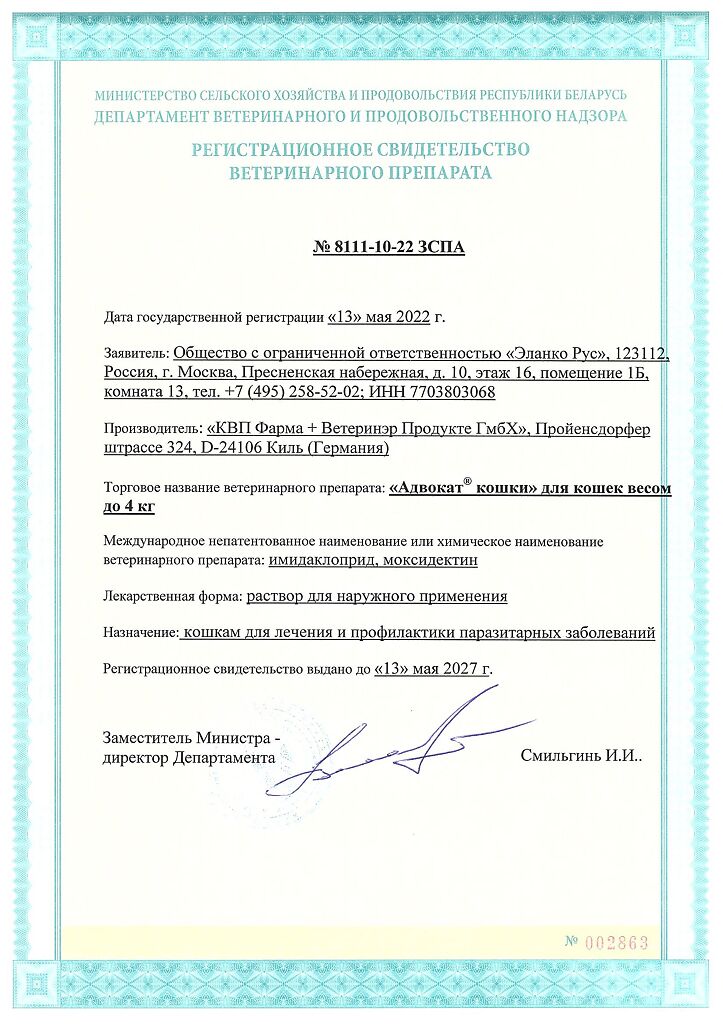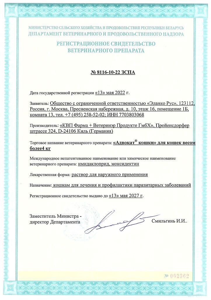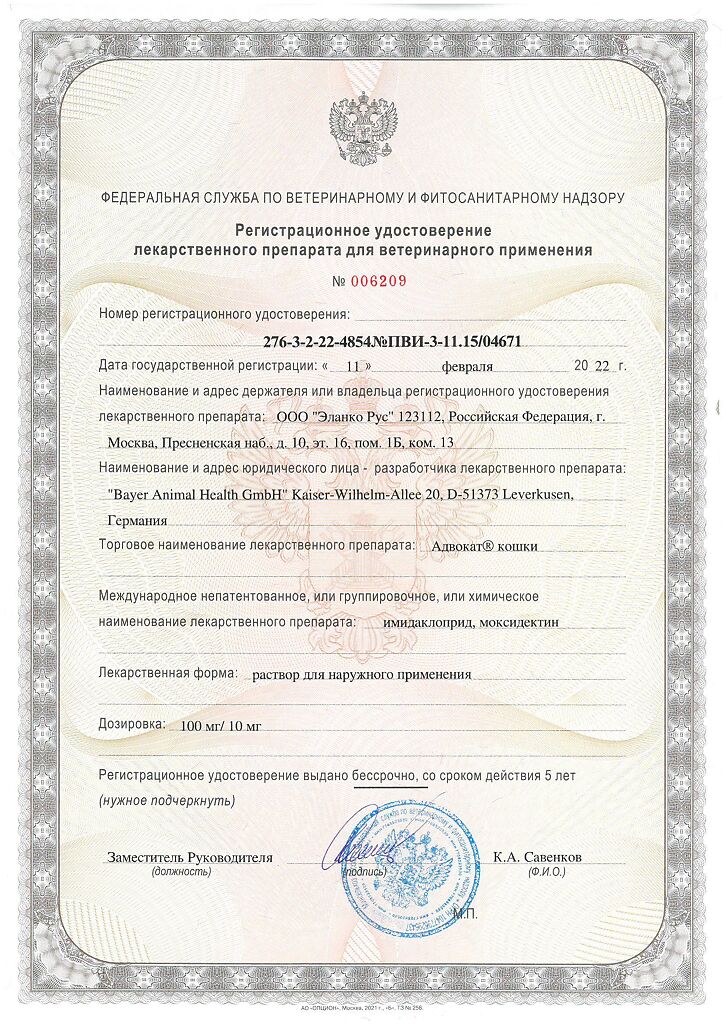 Таким образом, Адвокат® обеспечивает удобную и продолжительную защиту от многочисленных паразитов, угрожающих благополучию, здоровью и, в некоторых случаях, даже жизни питомцев.
