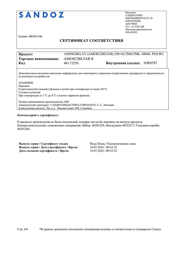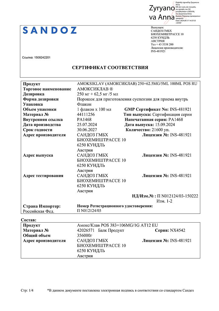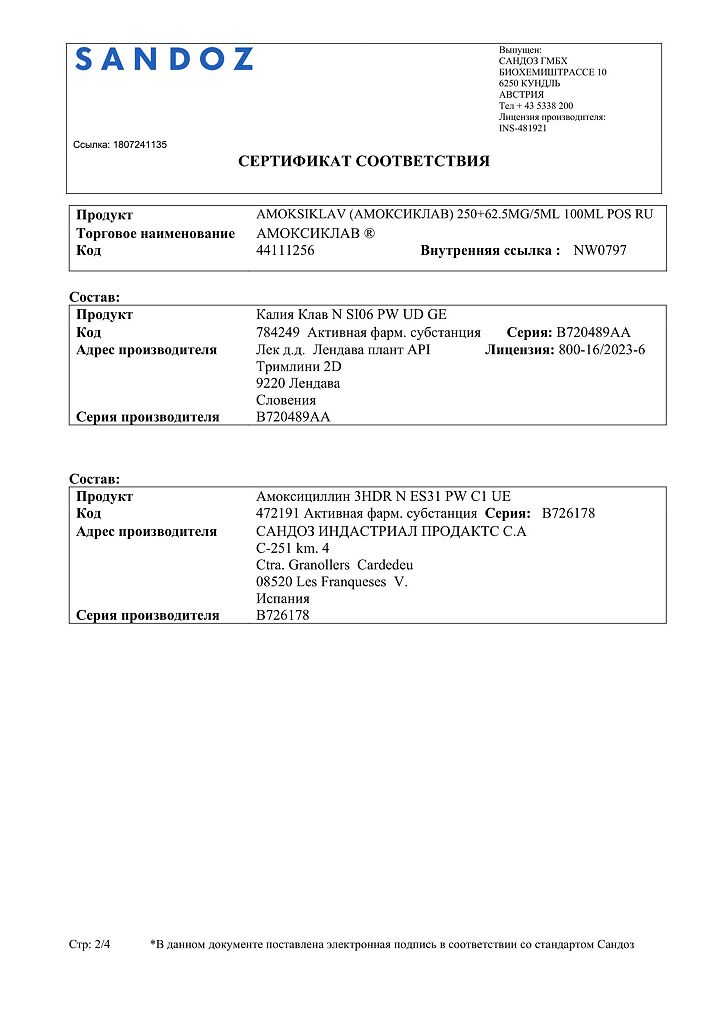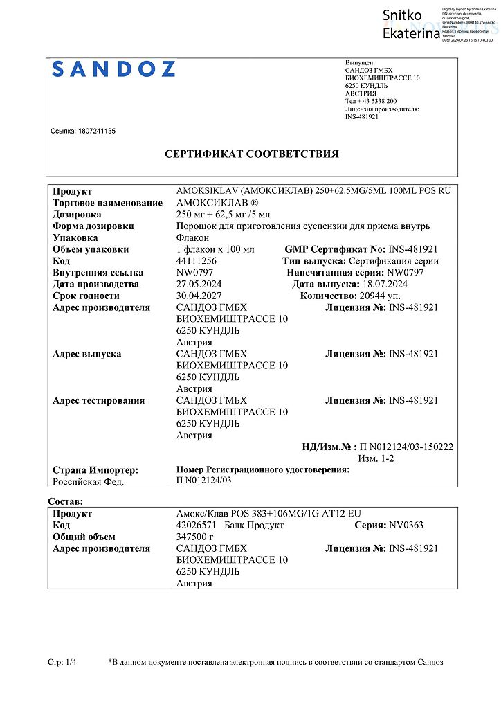 • Информацию об акциях и скидках на Амоксиклав уточняйте на нашем сайте.