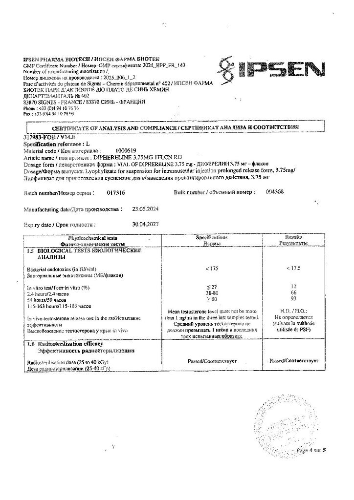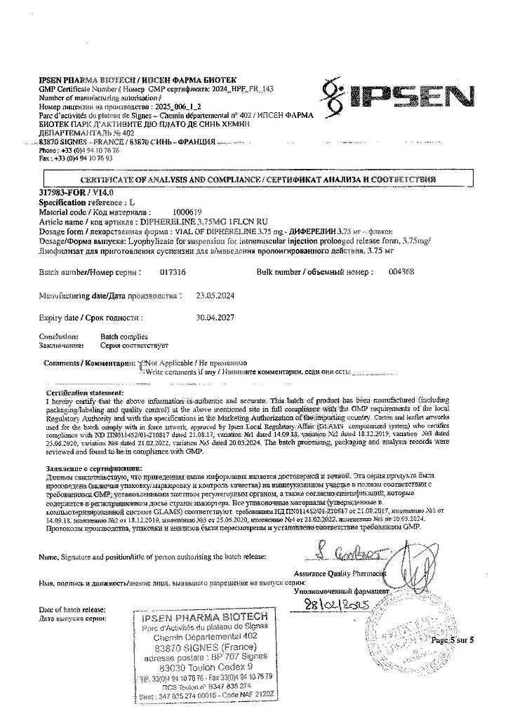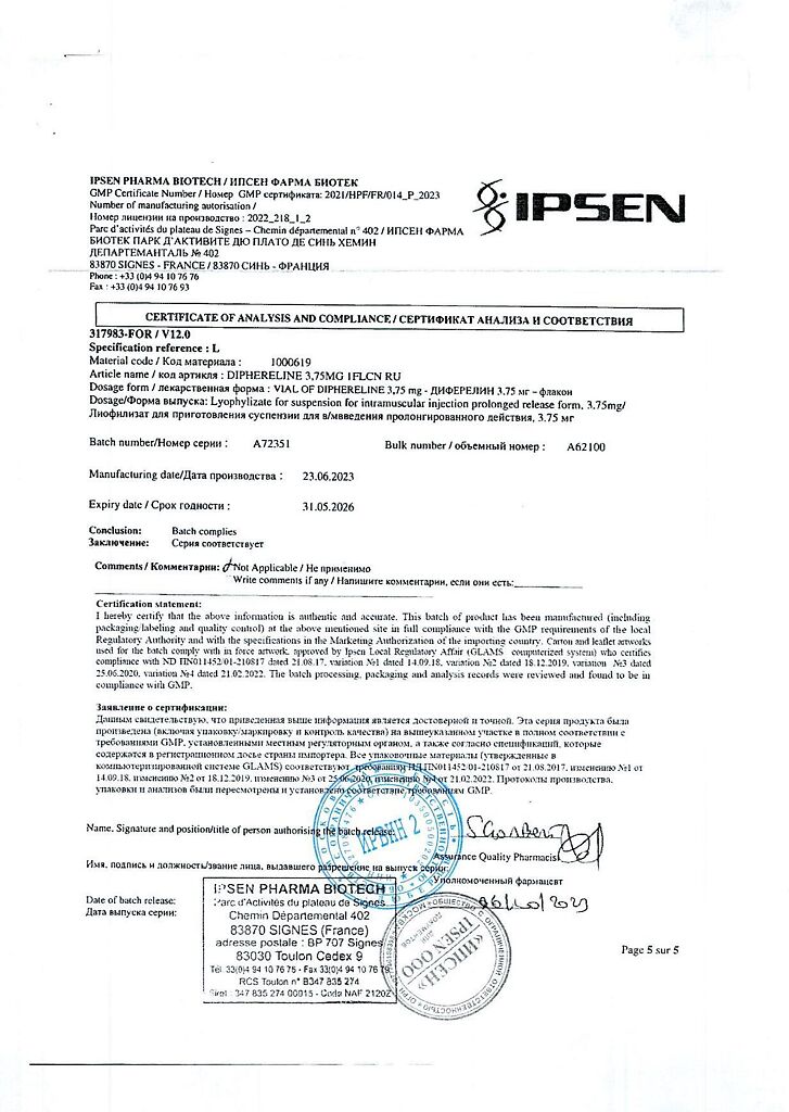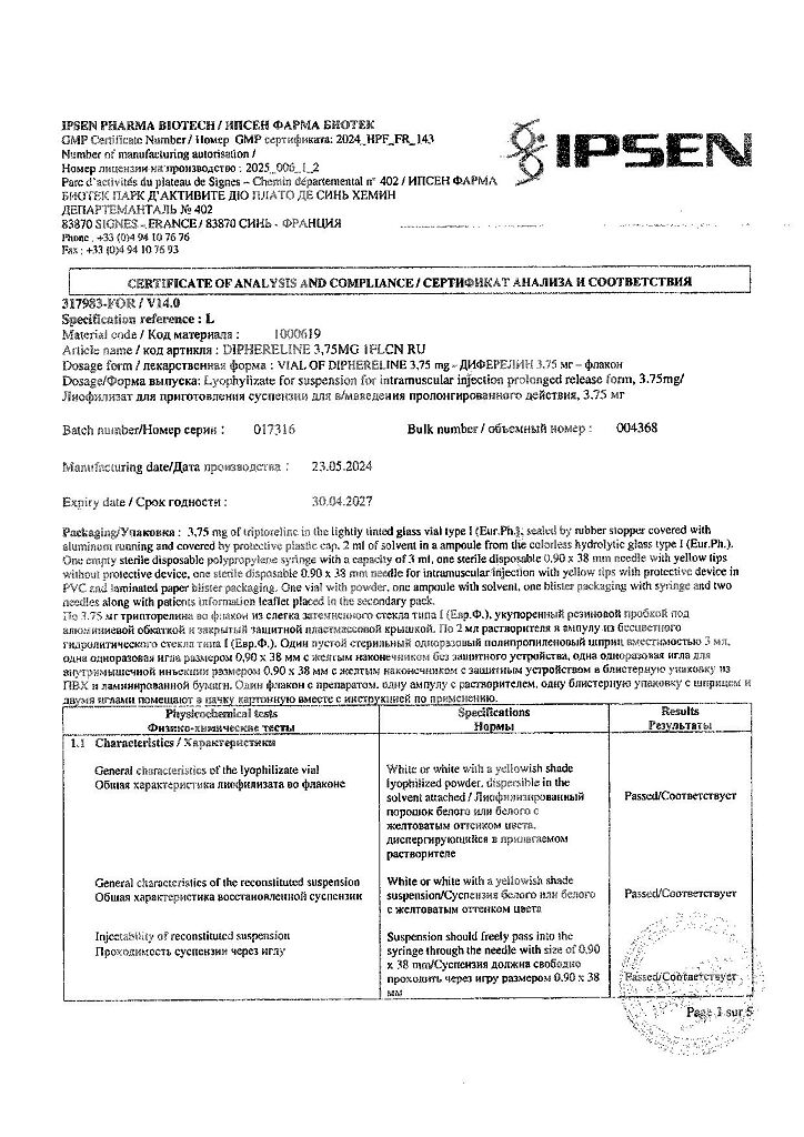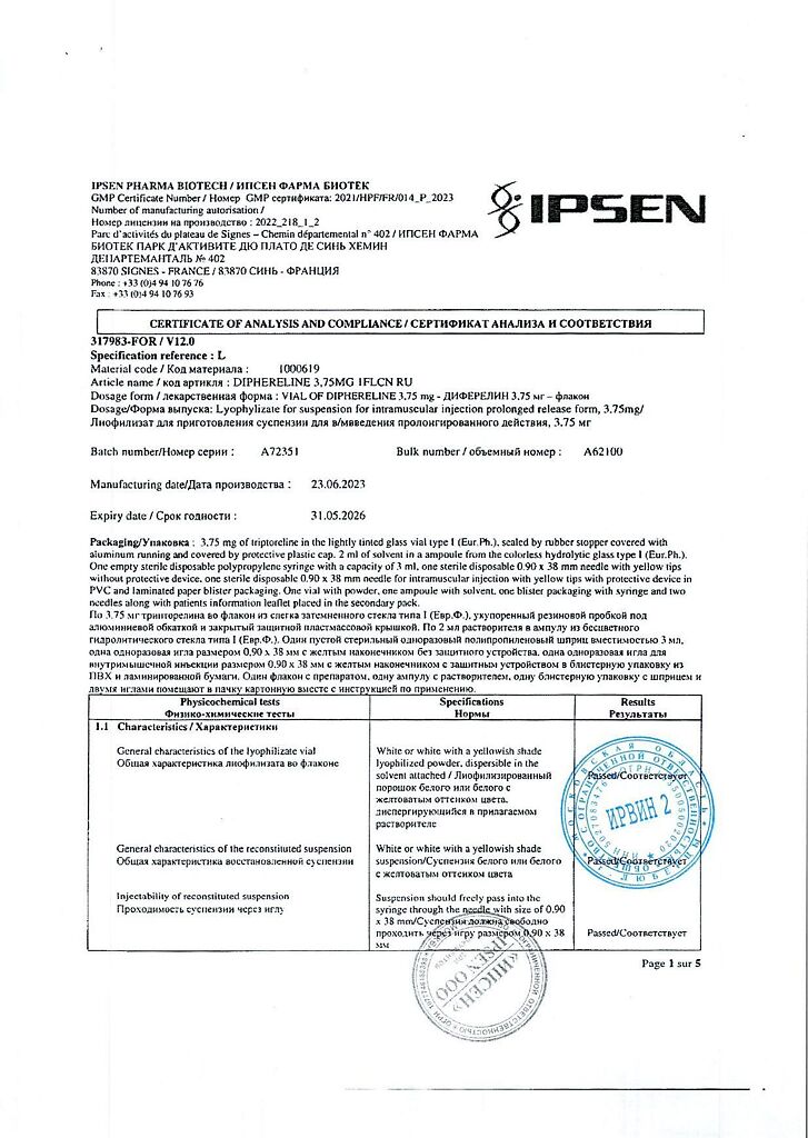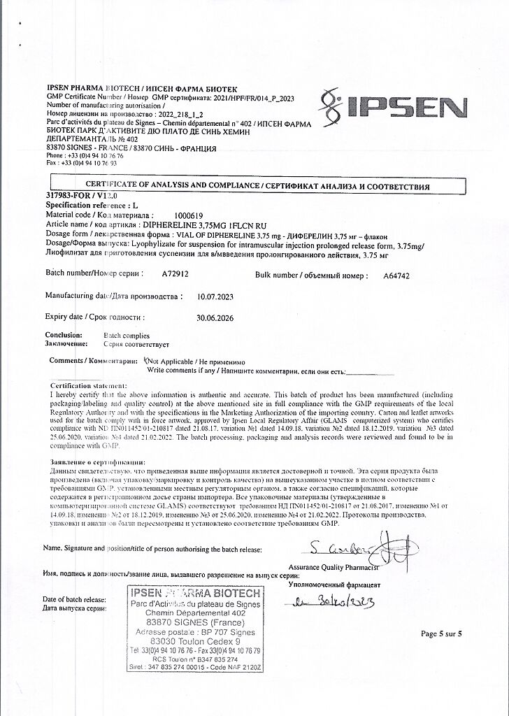 • Информацию об акциях и скидках на Диферелин уточняйте на нашем сайте.
