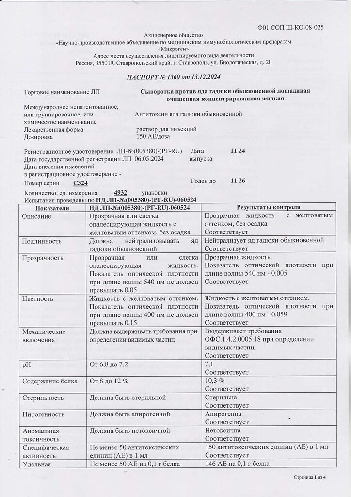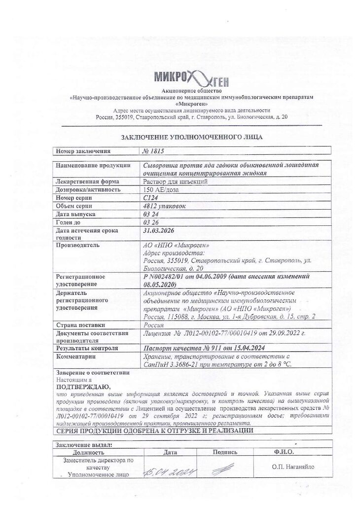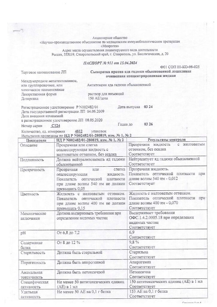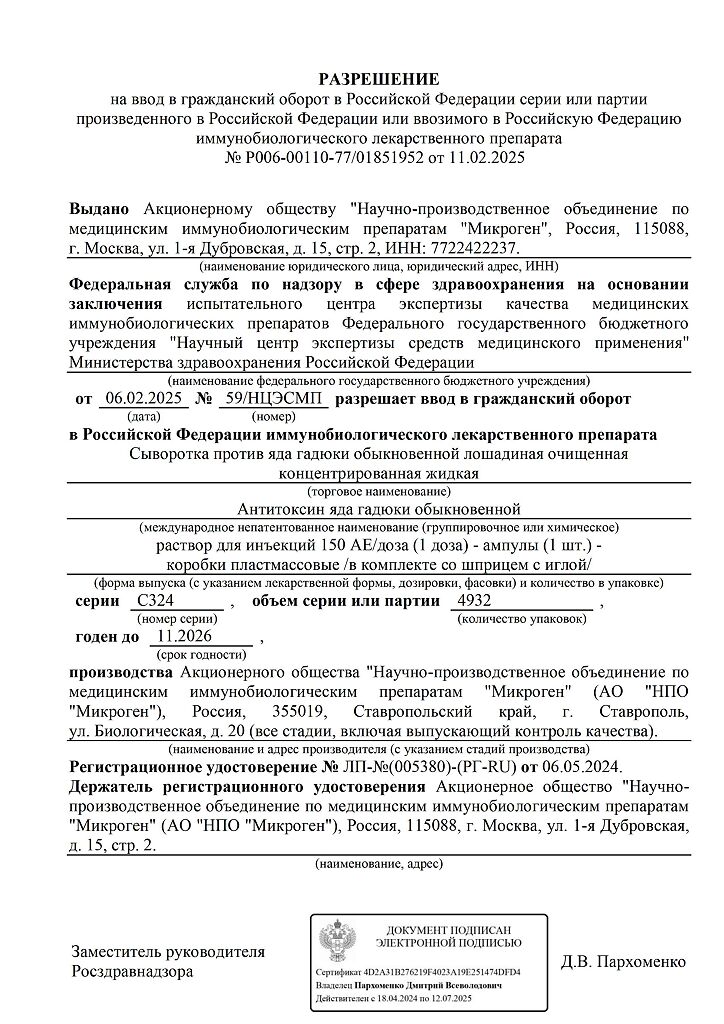 • Информацию об акциях и скидках на Сыворотка против яда гадюки обыкновенной уточняйте на нашем сайте.