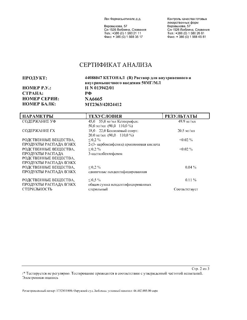 • Информацию об акциях и скидках на Кетонал уточняйте на нашем сайте.
