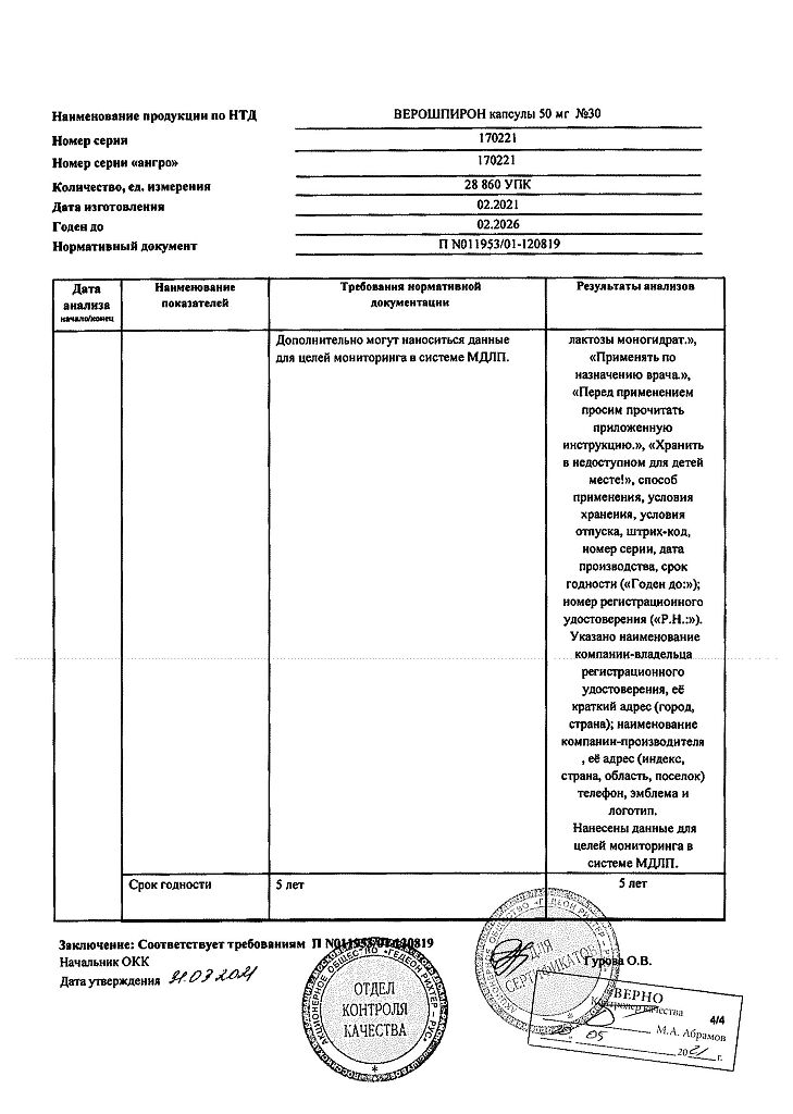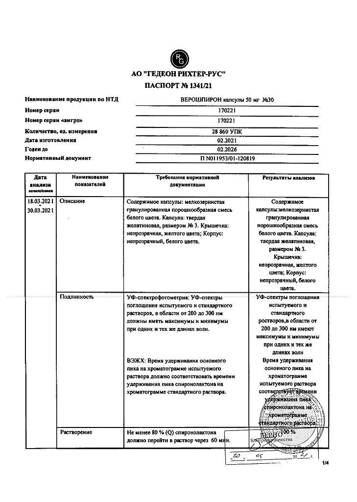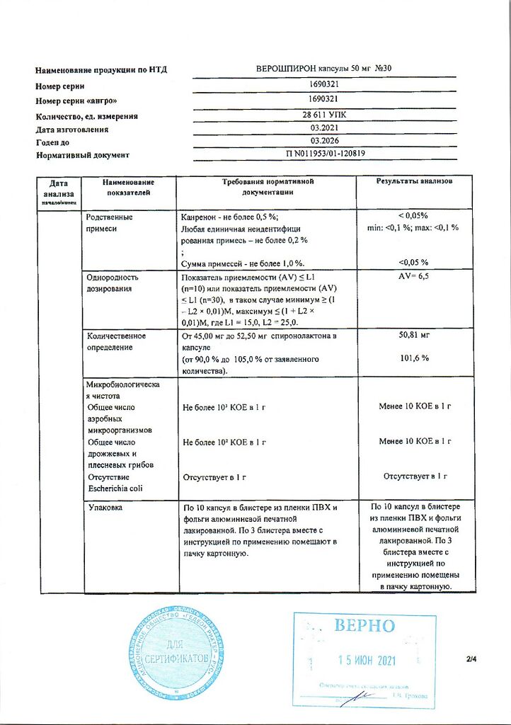 • 📒 Подробная инструкция по применению Верошпирон капсулы 50 мг, 30 шт.
