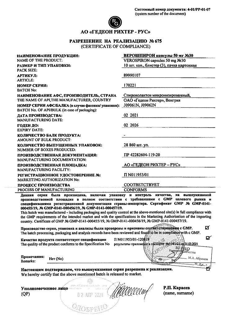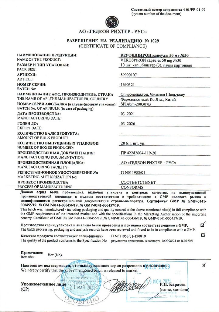 • 📲 Цена на Верошпирон капсулы 50 мг, 30 шт. ниже в нашем приложении
