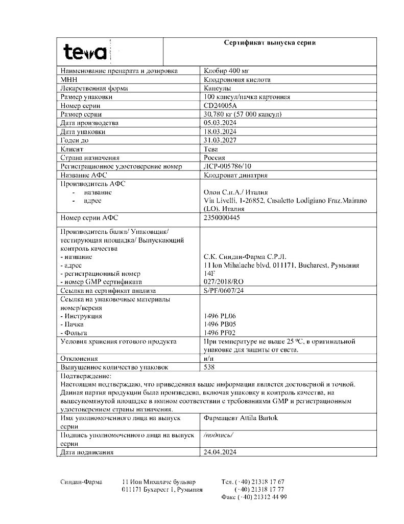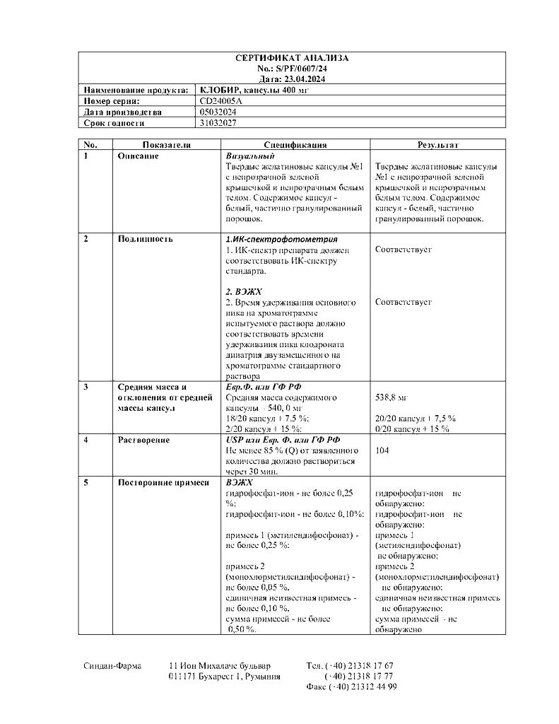 Документы Клобир капсулы 400 мг 100 шт