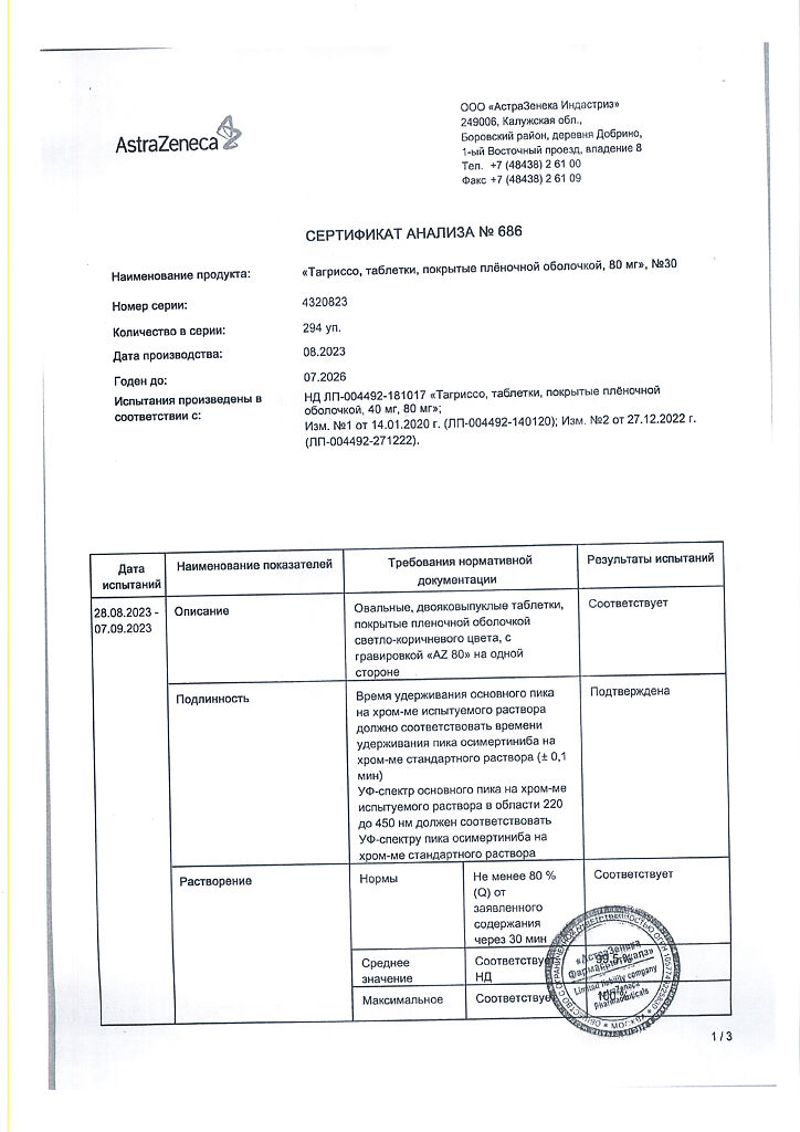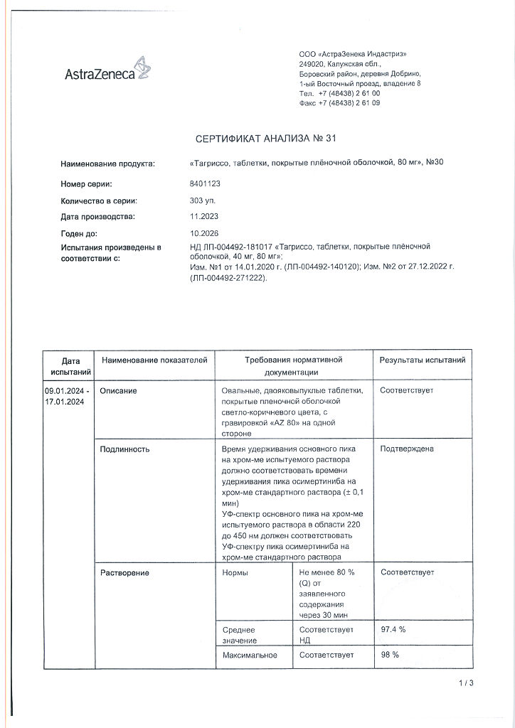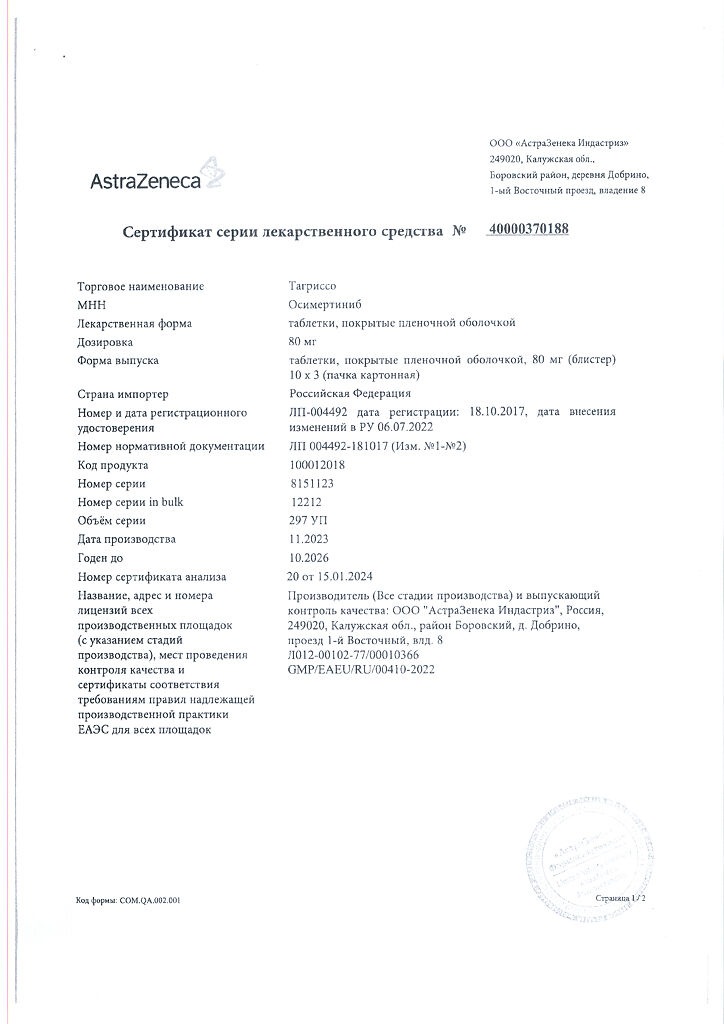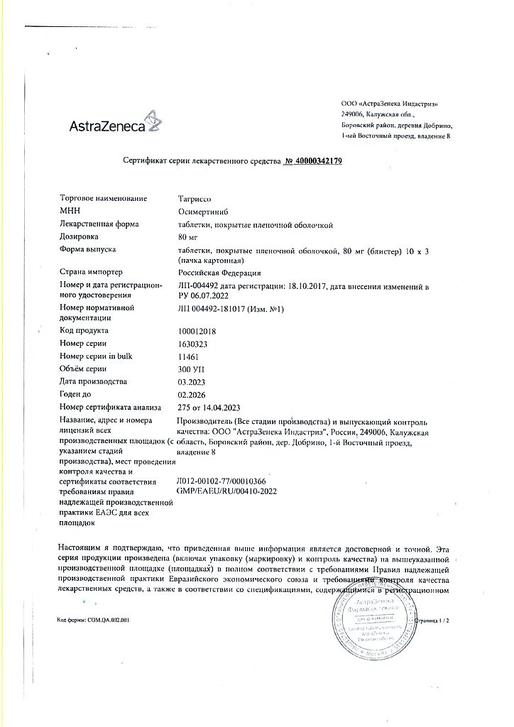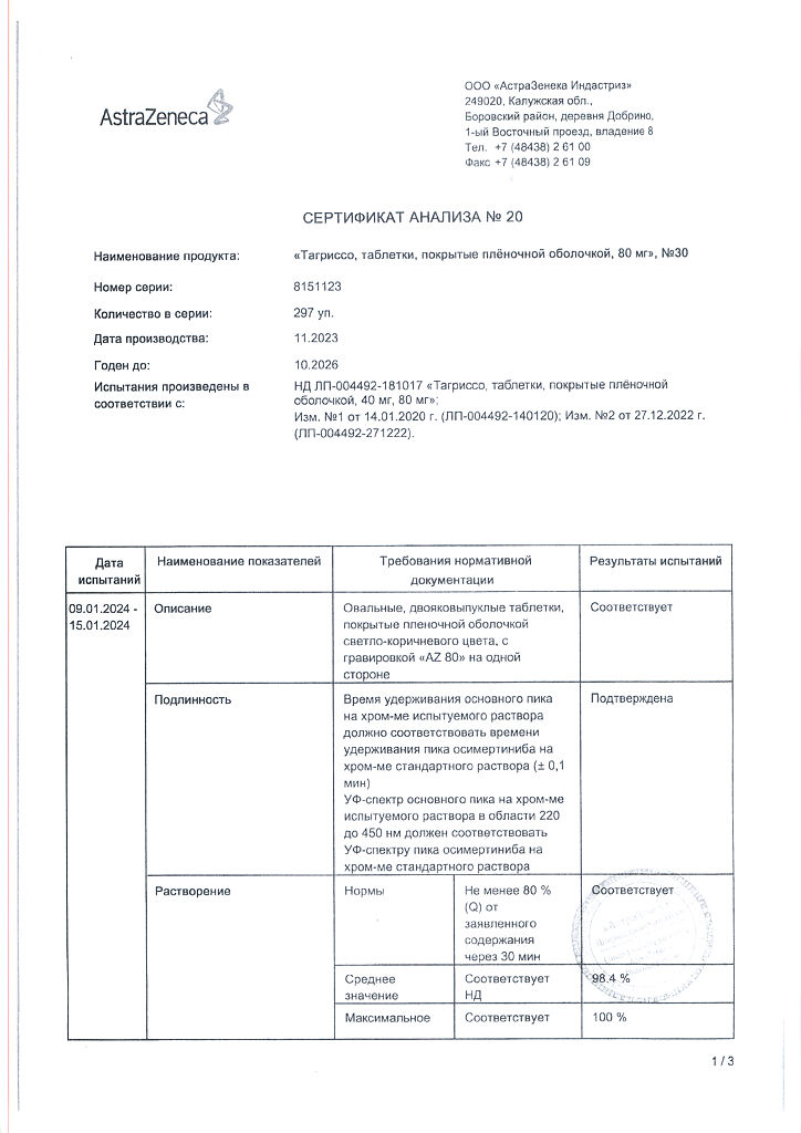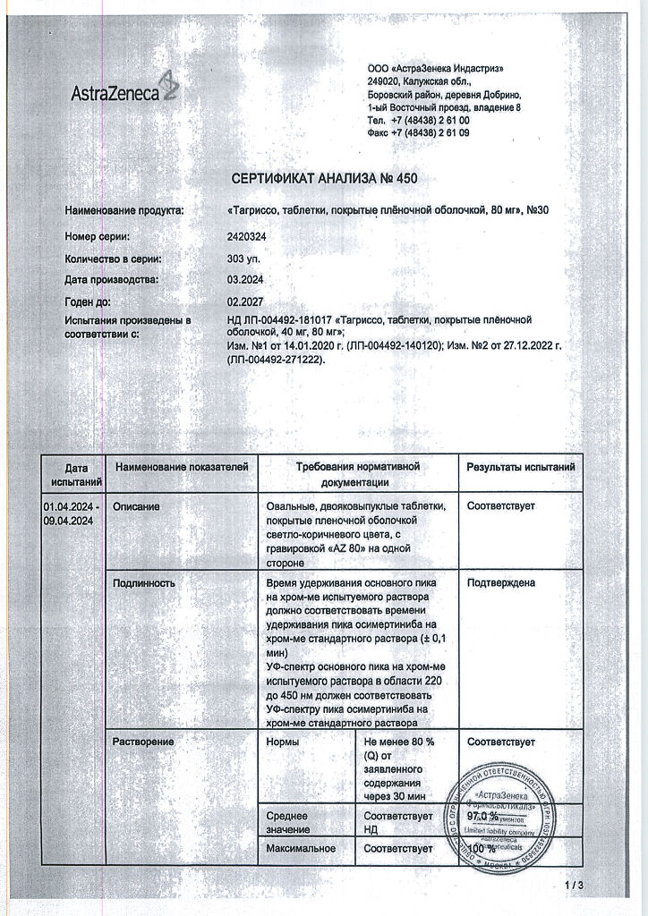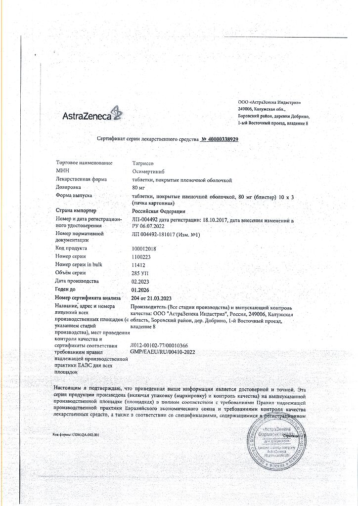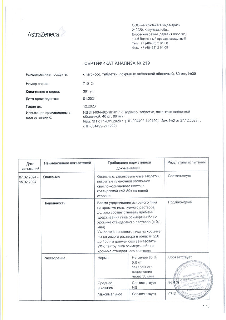 До назначения препарата Тагриссо следует подтвердить статус мутации в гене EGFR с помощью валидированного теста:
