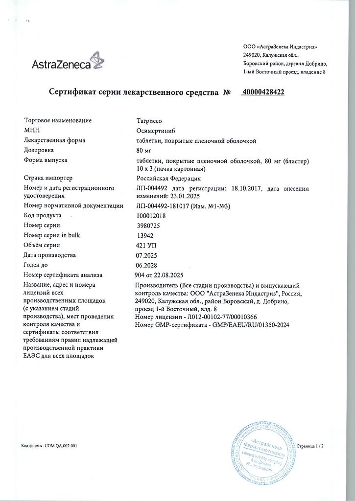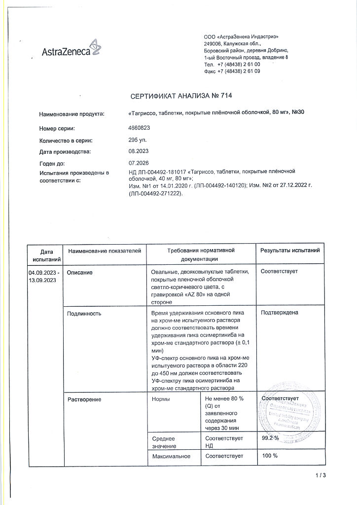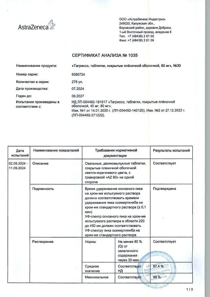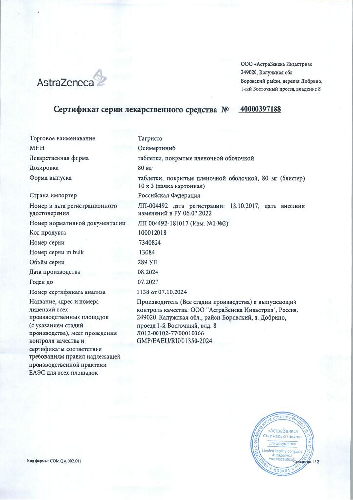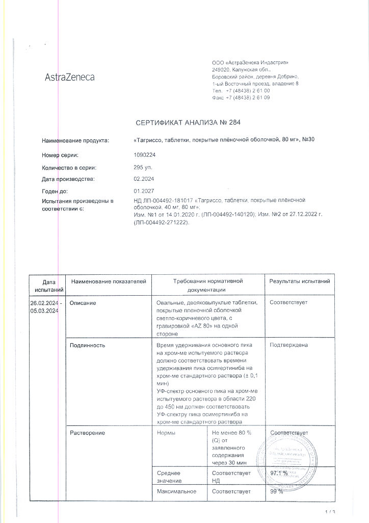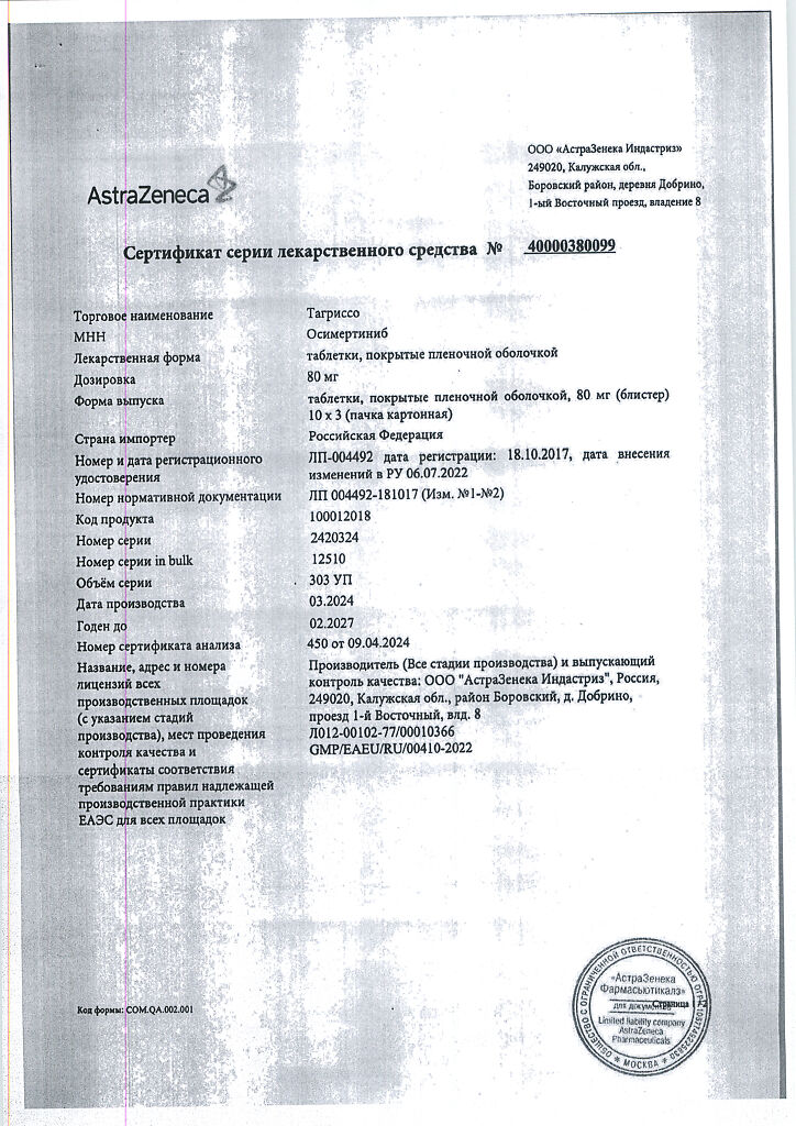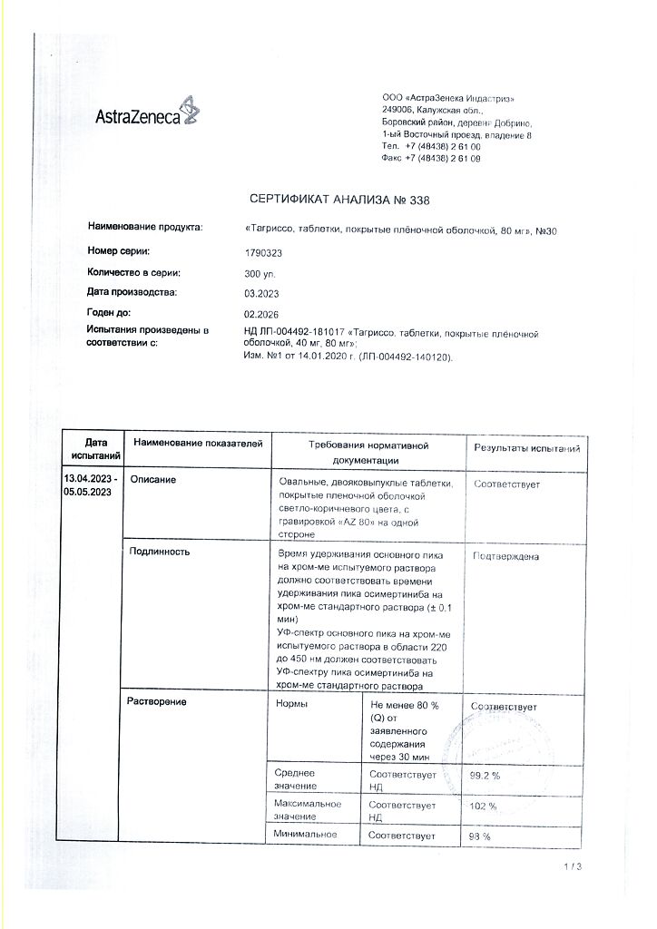 До назначения препарата Тагриссо следует подтвердить статус мутации в гене EGFR с помощью валидированного теста: