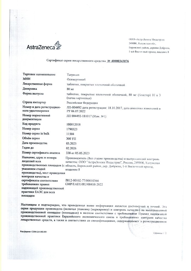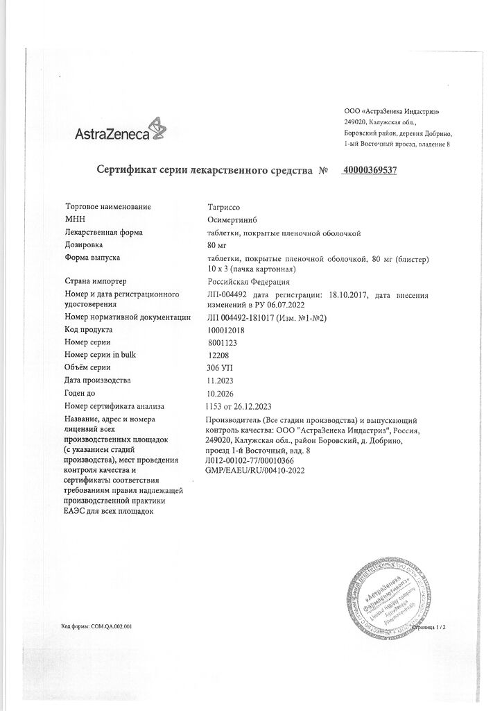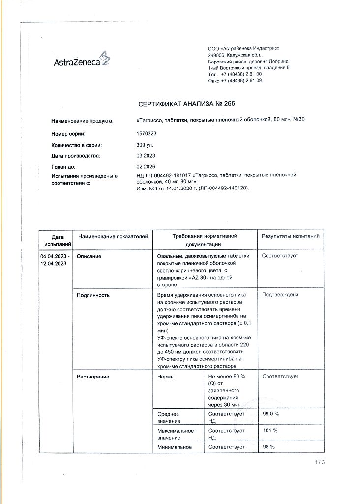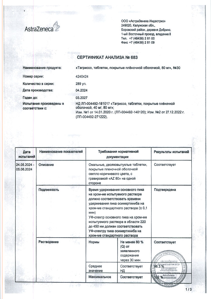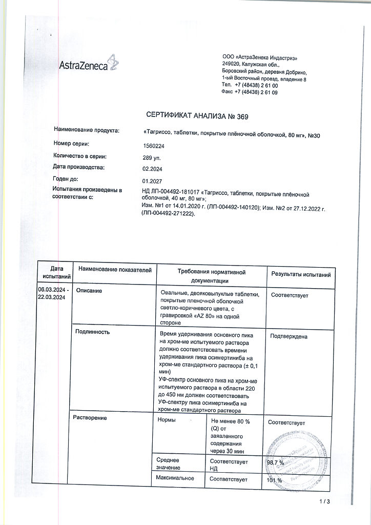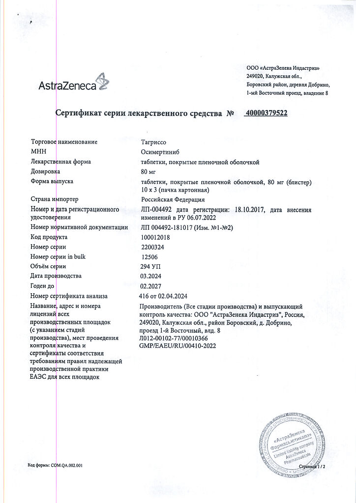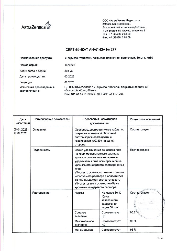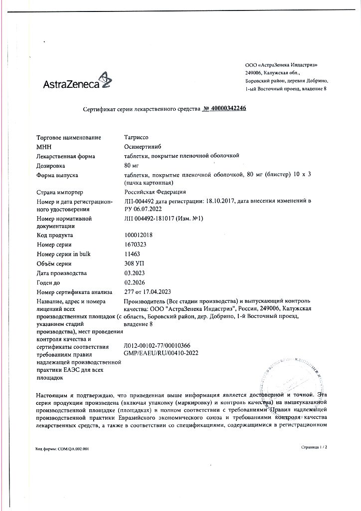 До назначения препарата Тагриссо следует подтвердить статус мутации в гене EGFR с помощью валидированного теста: