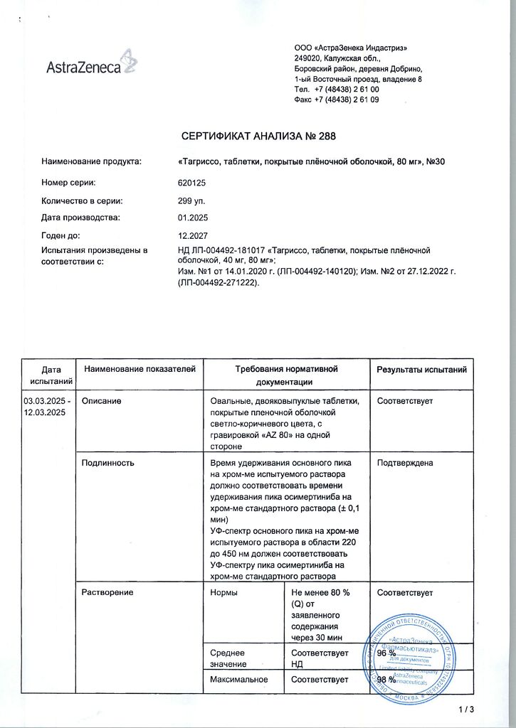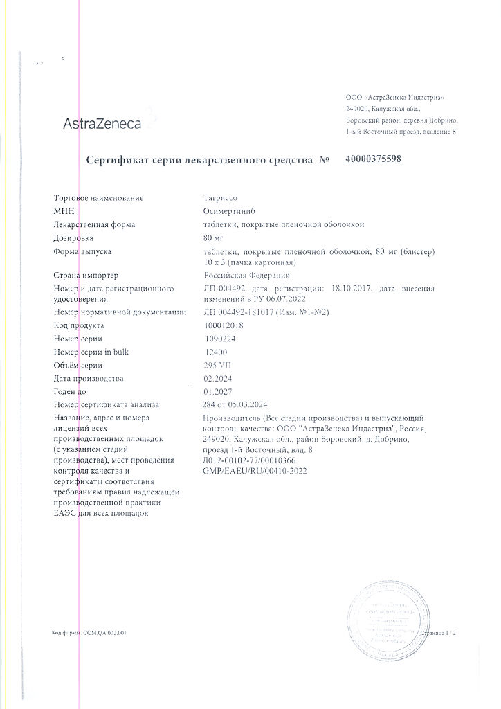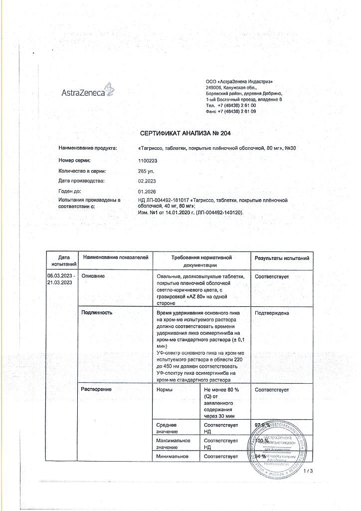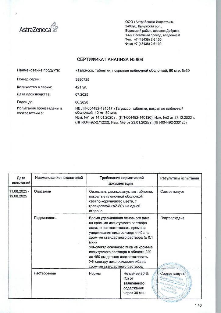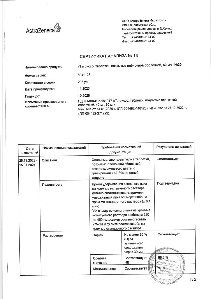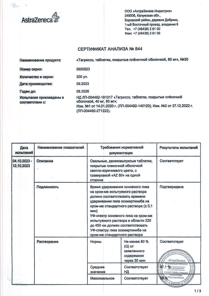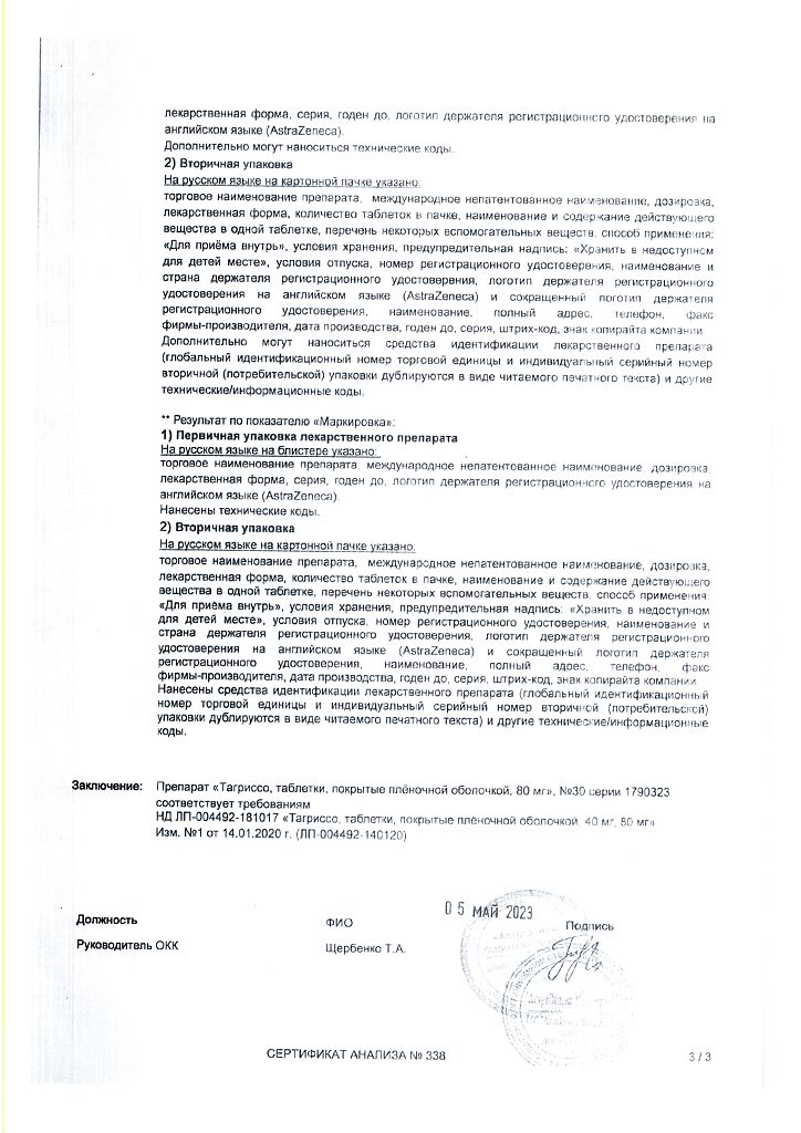 До назначения препарата Тагриссо следует подтвердить статус мутации в гене EGFR с помощью валидированного теста: