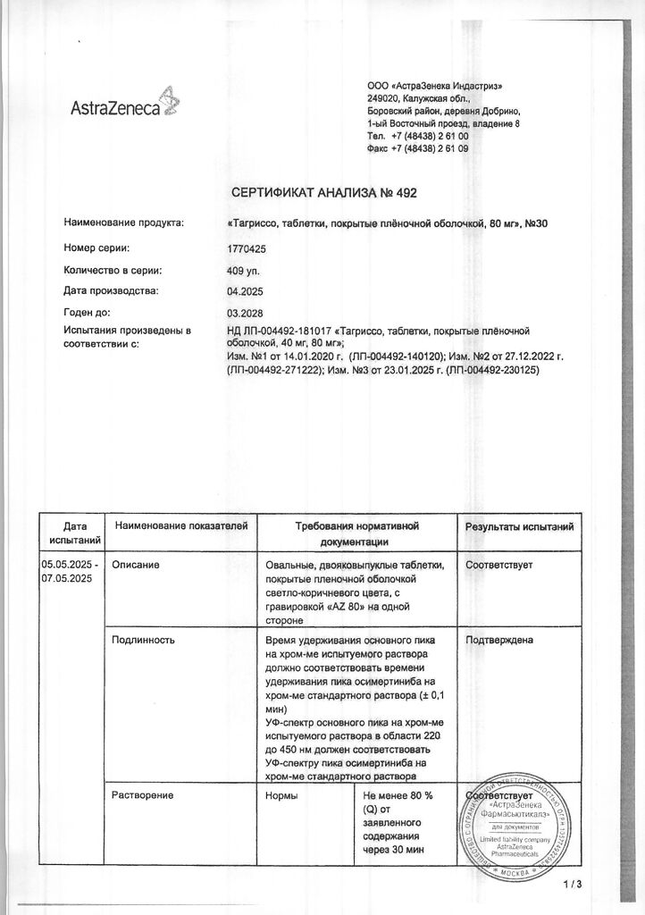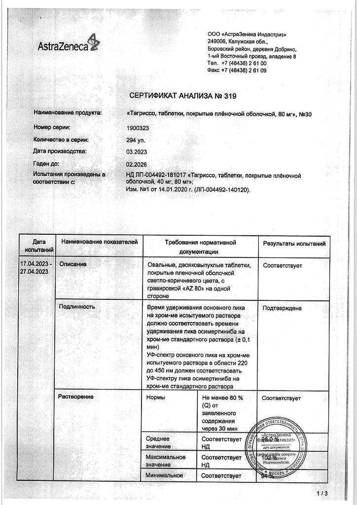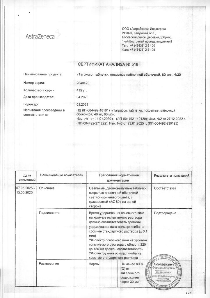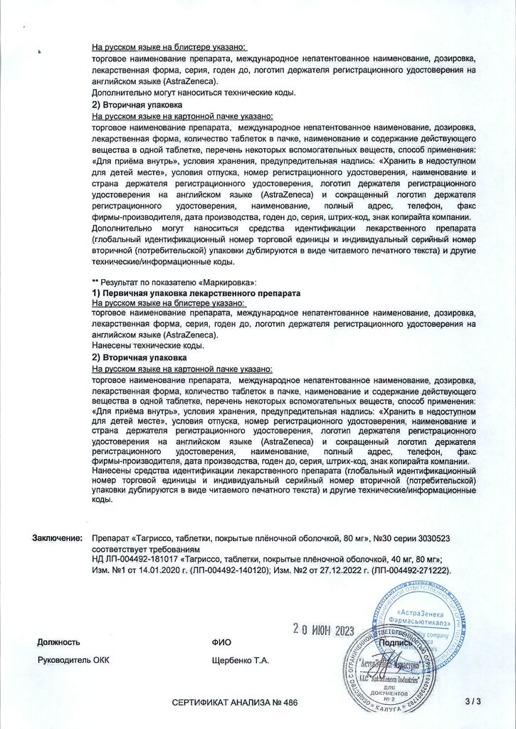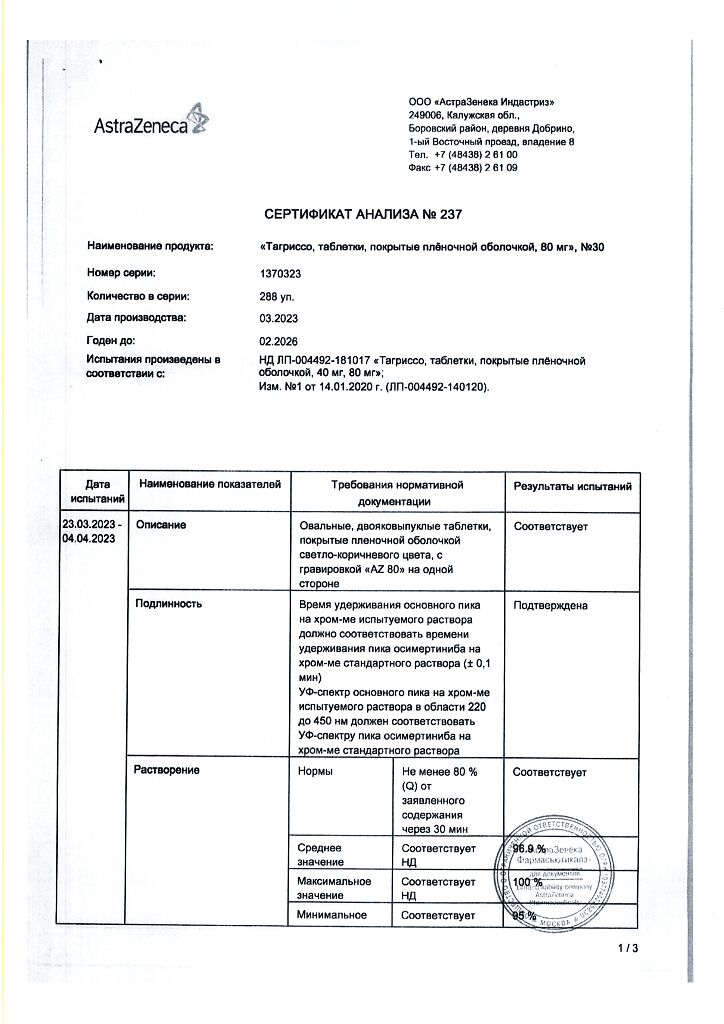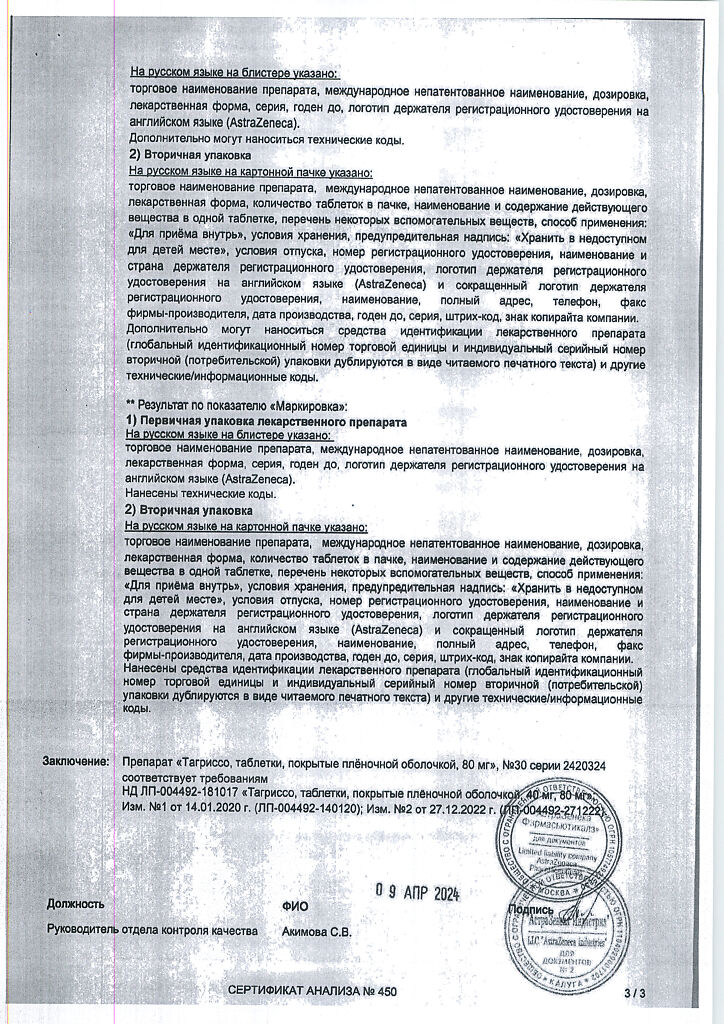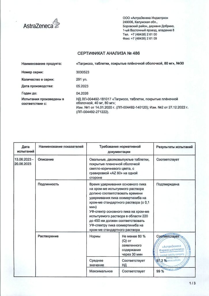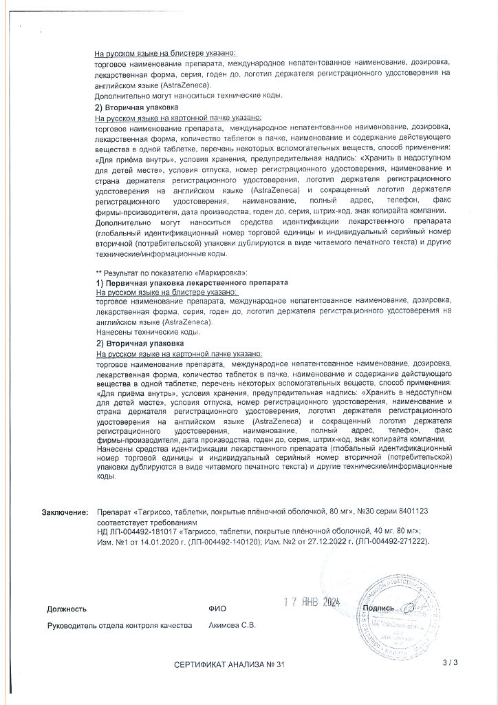 До назначения препарата Тагриссо следует подтвердить статус мутации в гене EGFR с помощью валидированного теста: