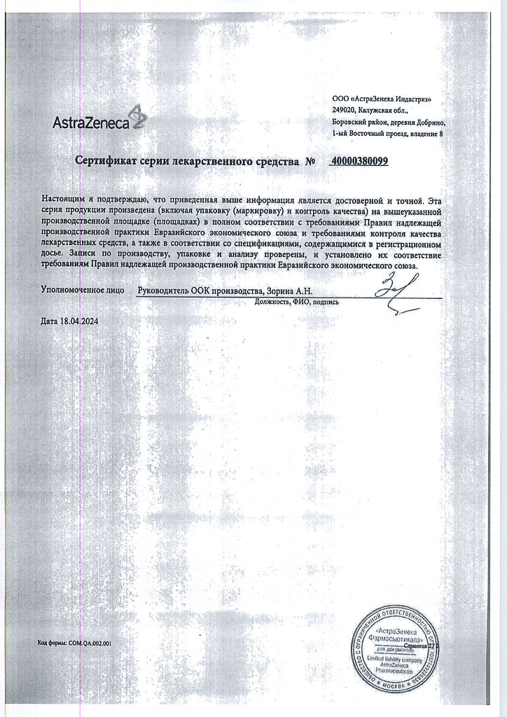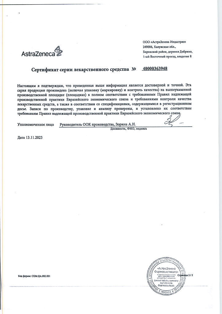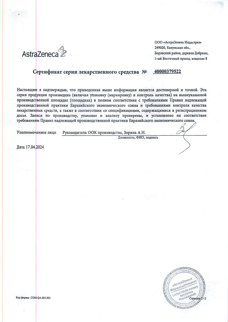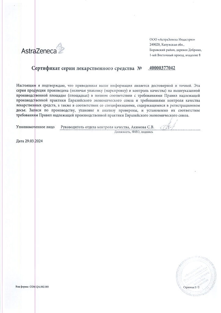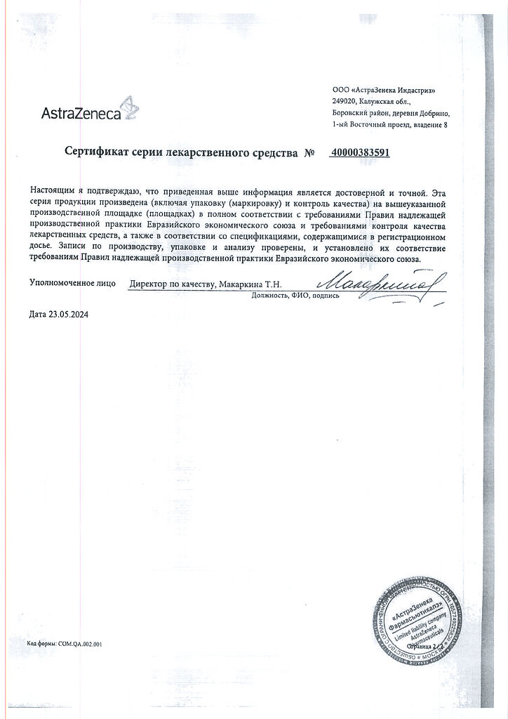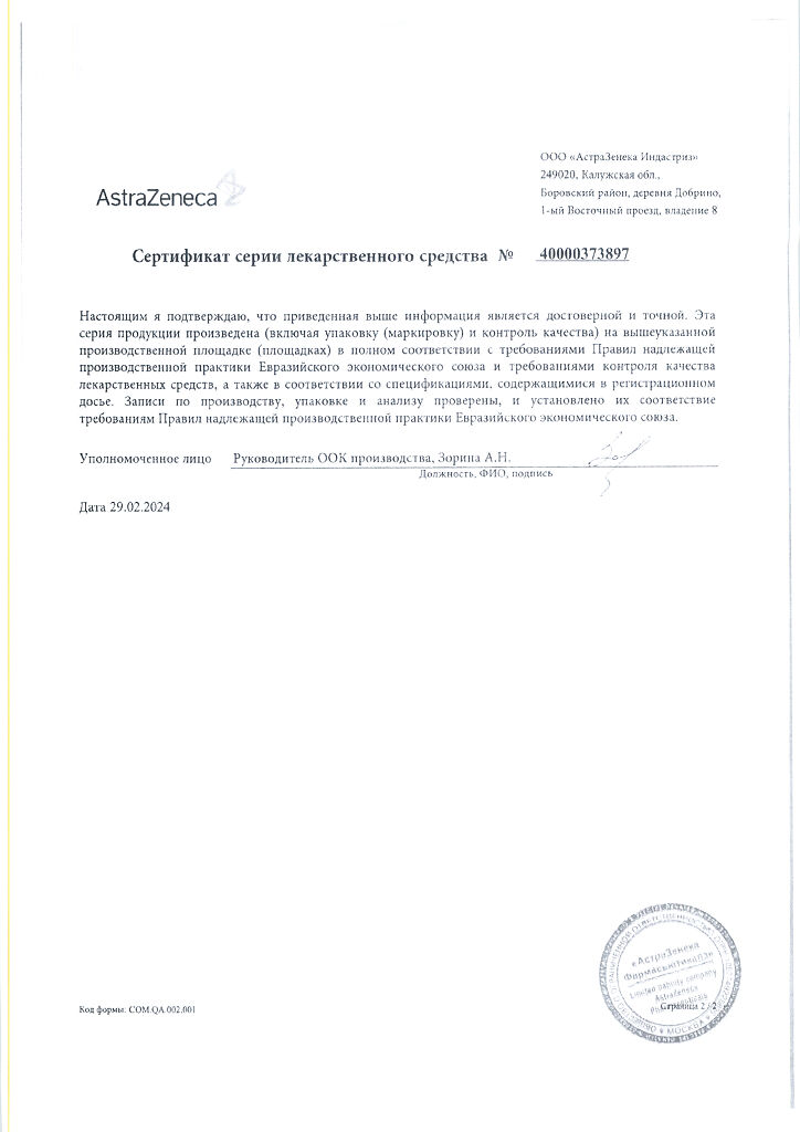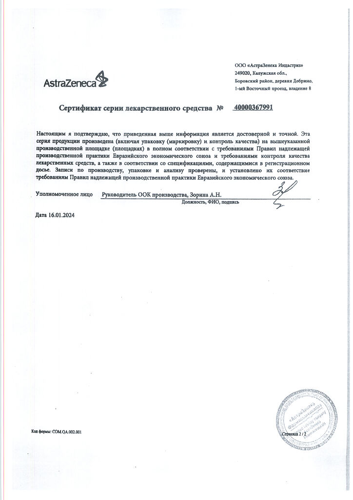 Производитель: АстраЗенека Индастриз ООО, Россия