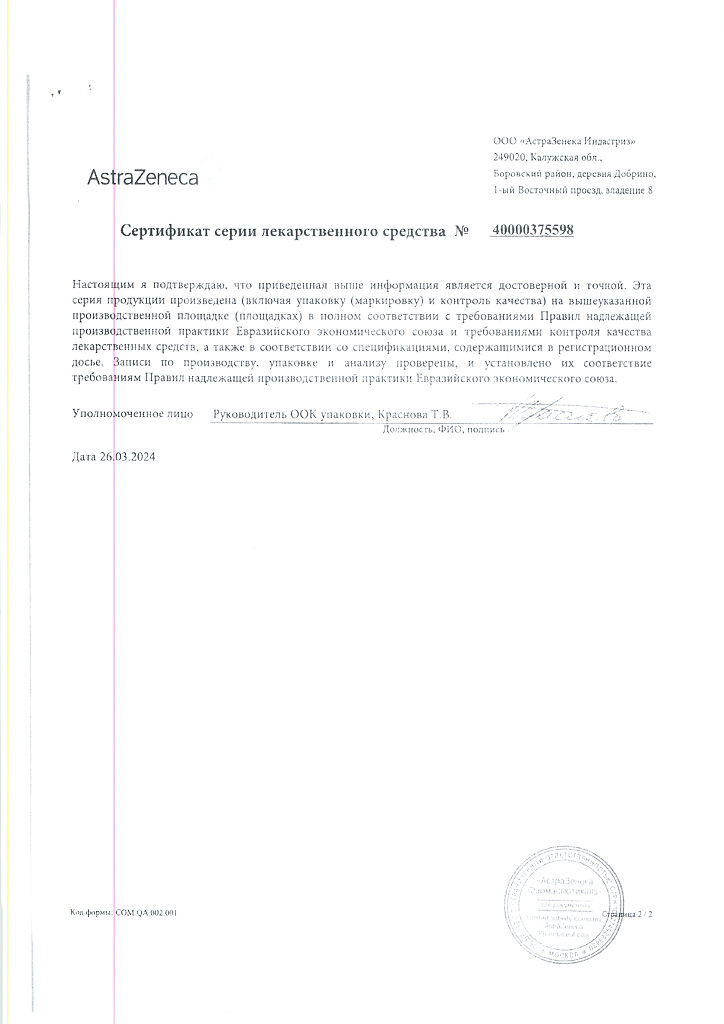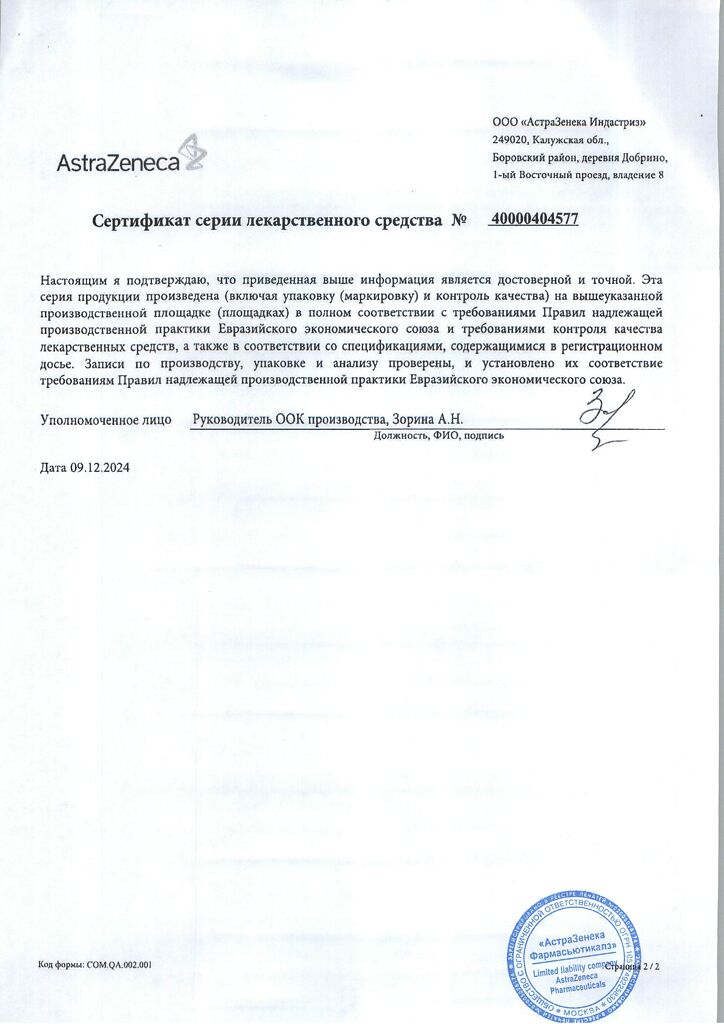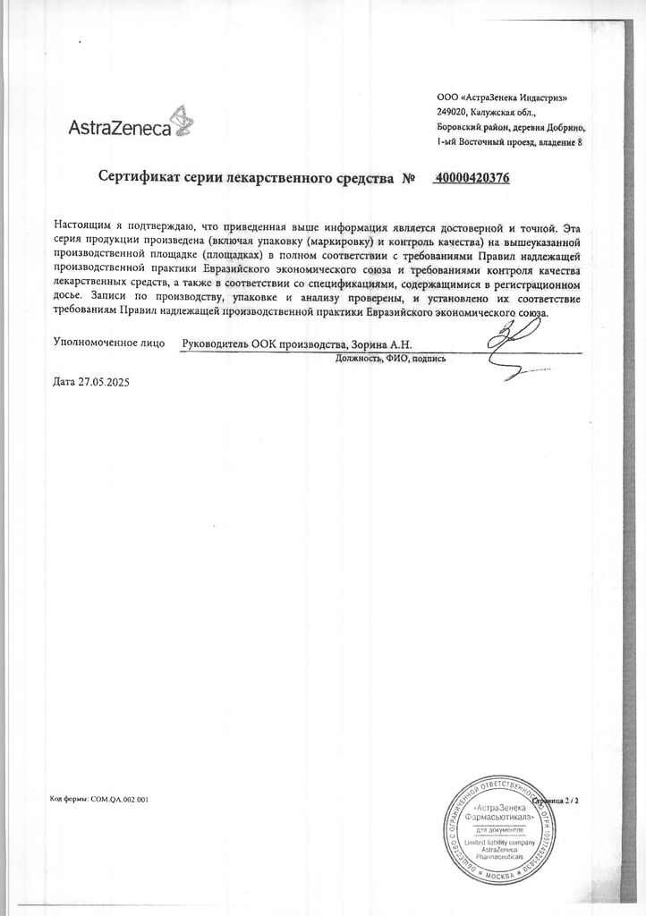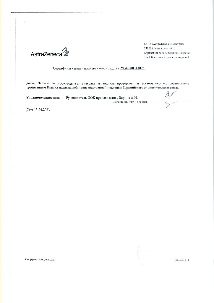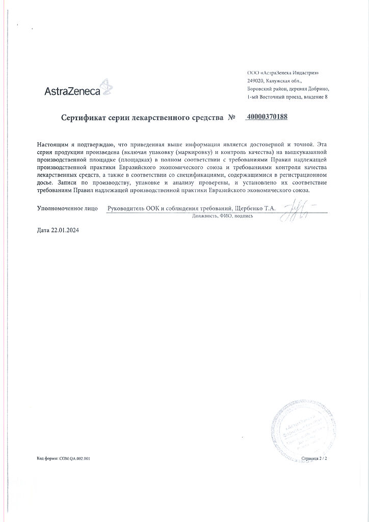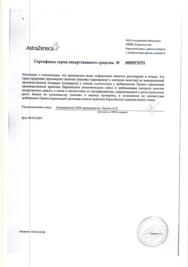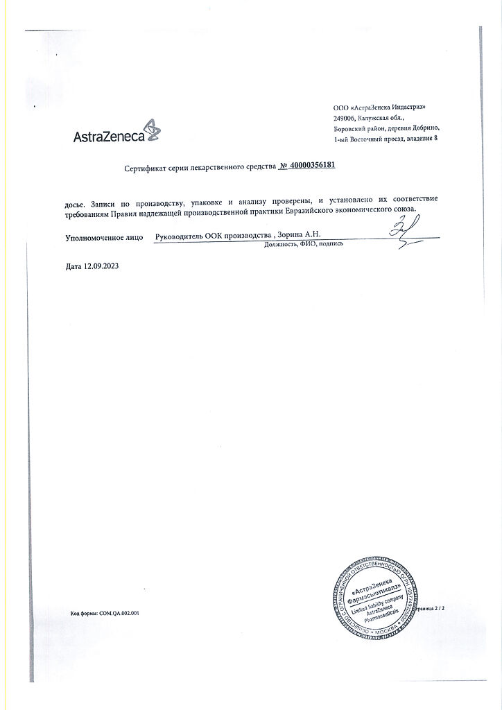 Производитель: АстраЗенека Индастриз ООО, Россия