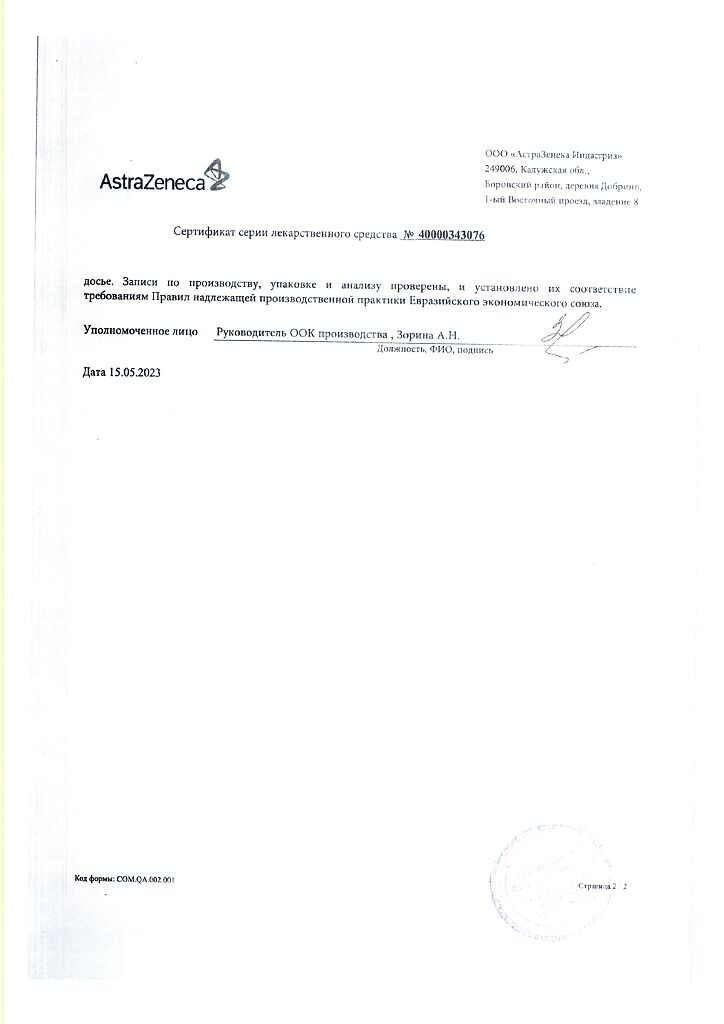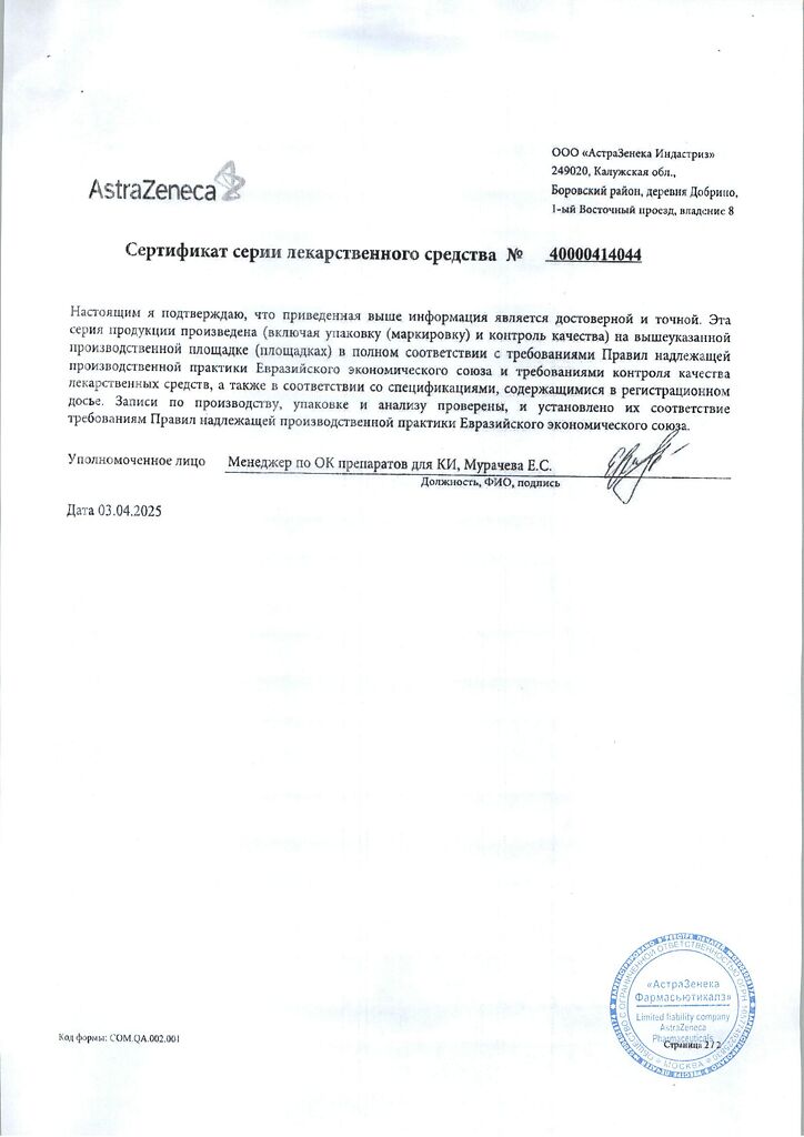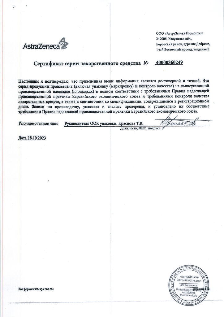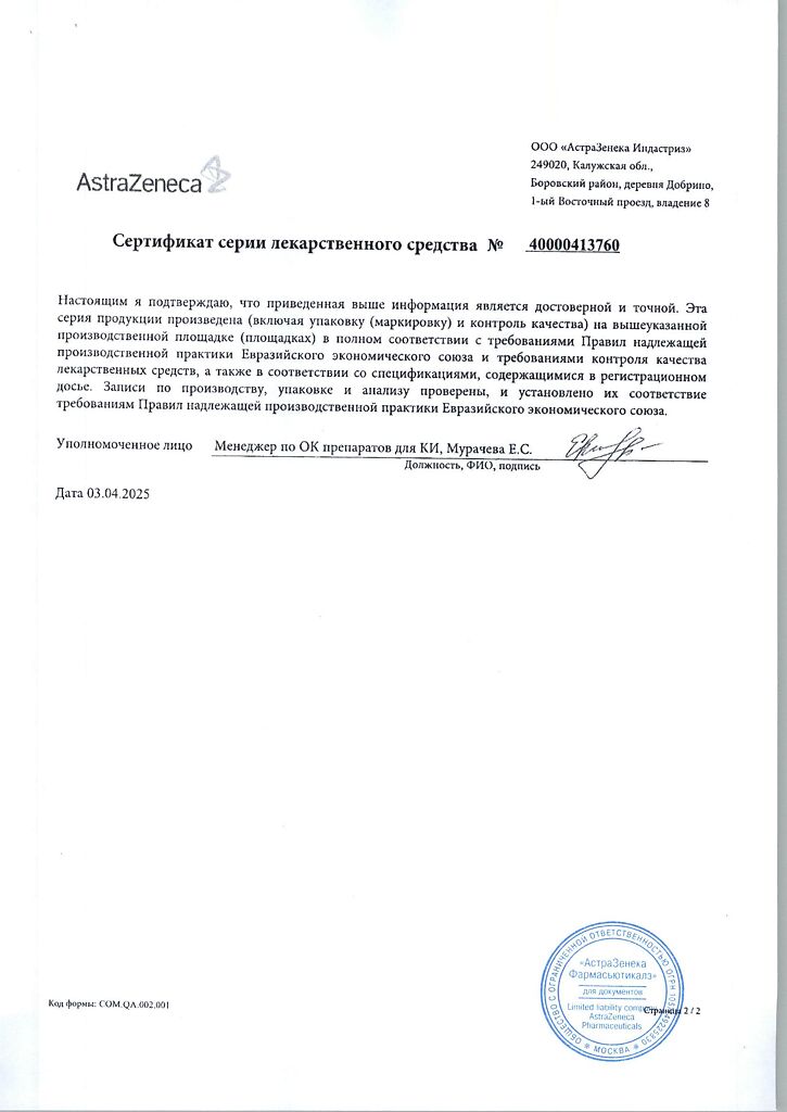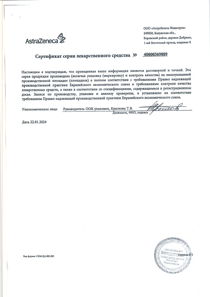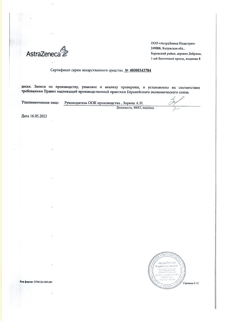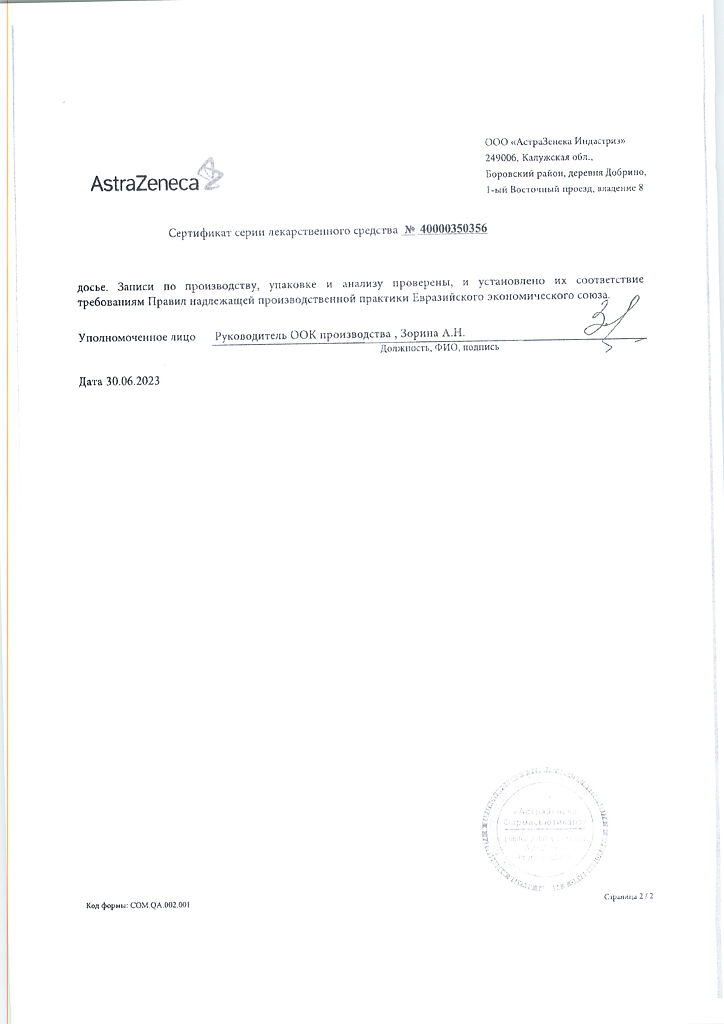 Производитель: АстраЗенека Индастриз ООО, Россия